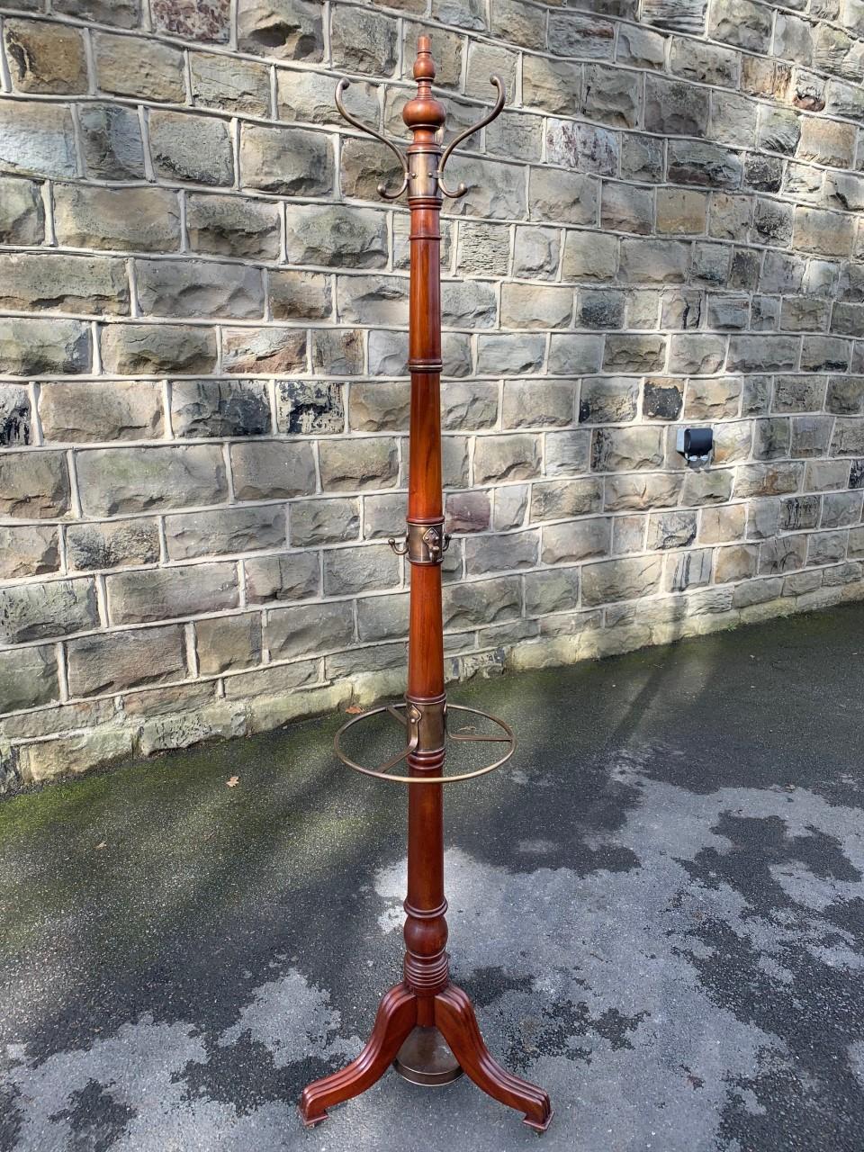 Quality Mahogany & Brass Hat & Coat Stand