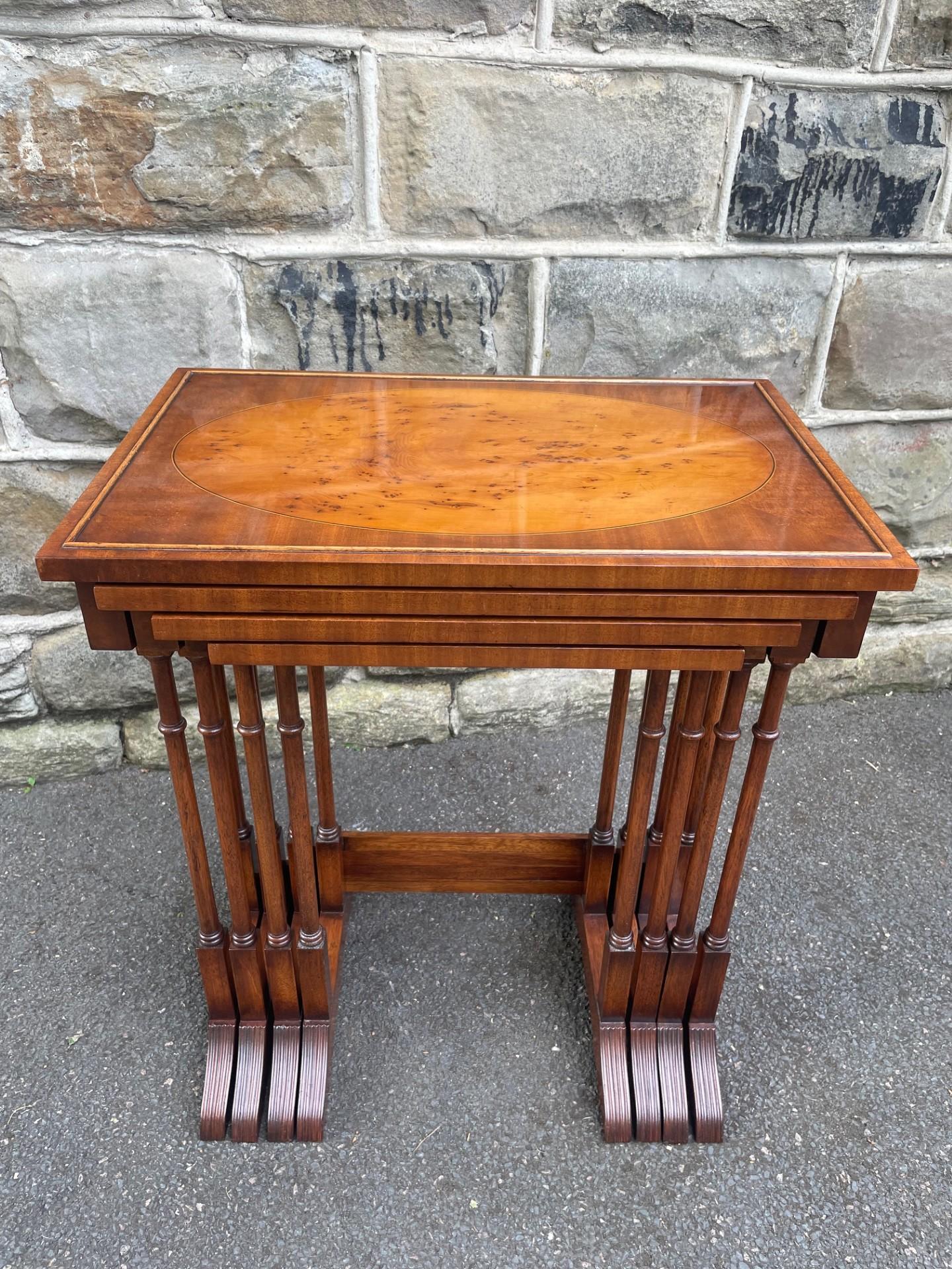 Quality Mahogany & Burr Yew Nest 4 Tables