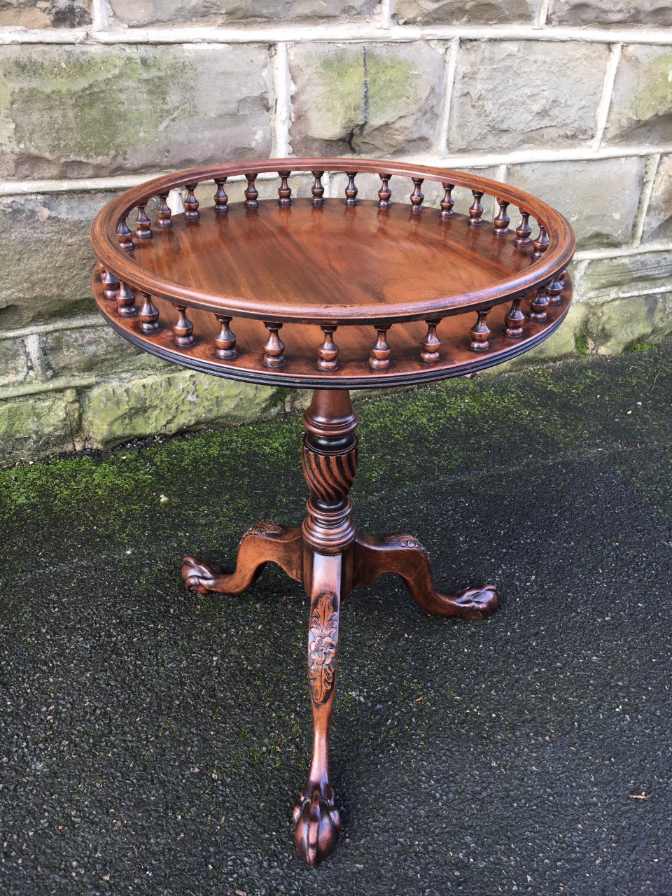 Quality Mahogany Gallery Top Tripod Wine Table