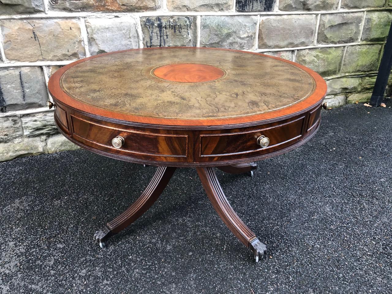 Quality Mahogany & Leather Drum Coffee Table