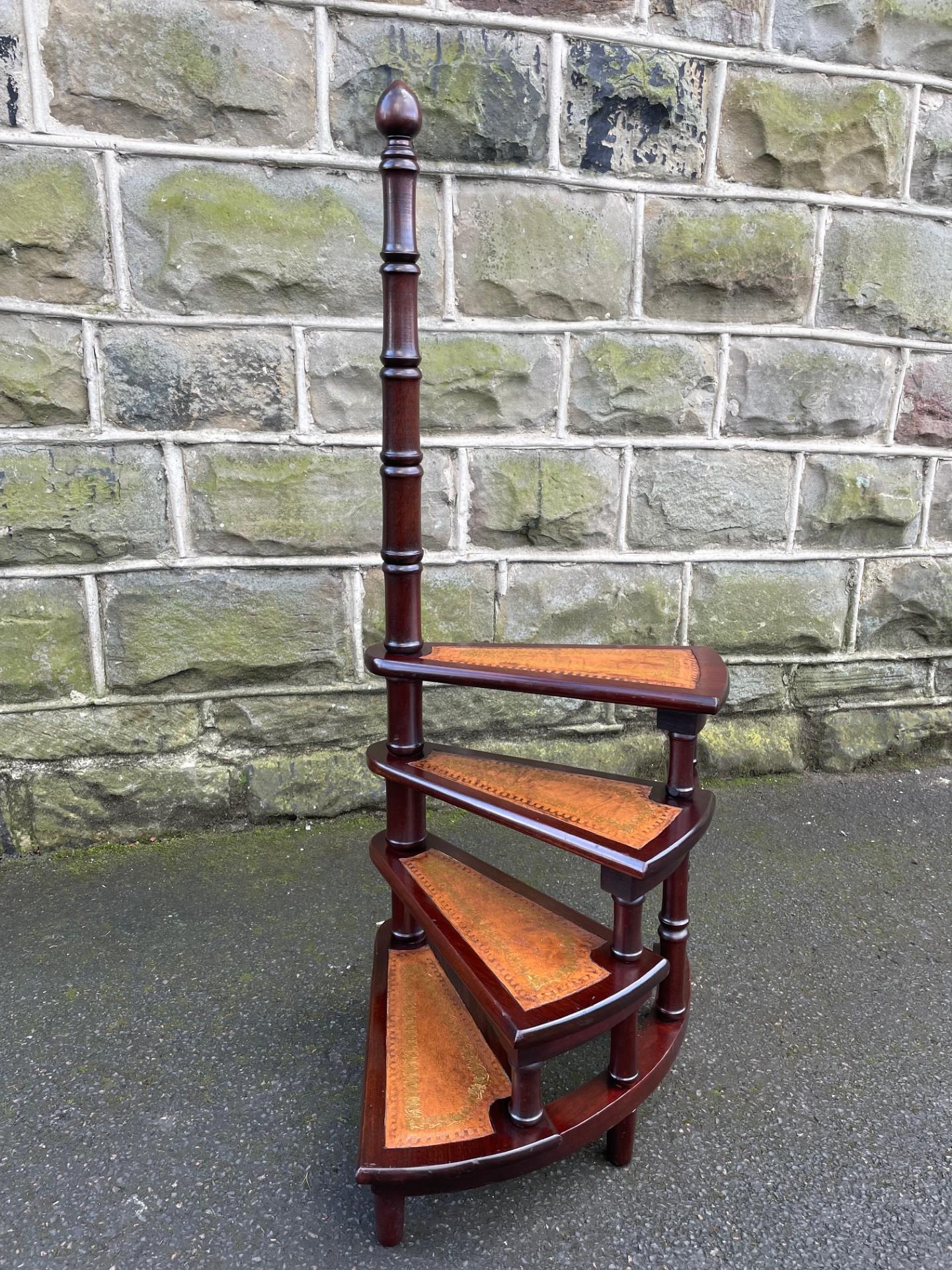 Quality Mahogany & Leather Spiral Library Steps