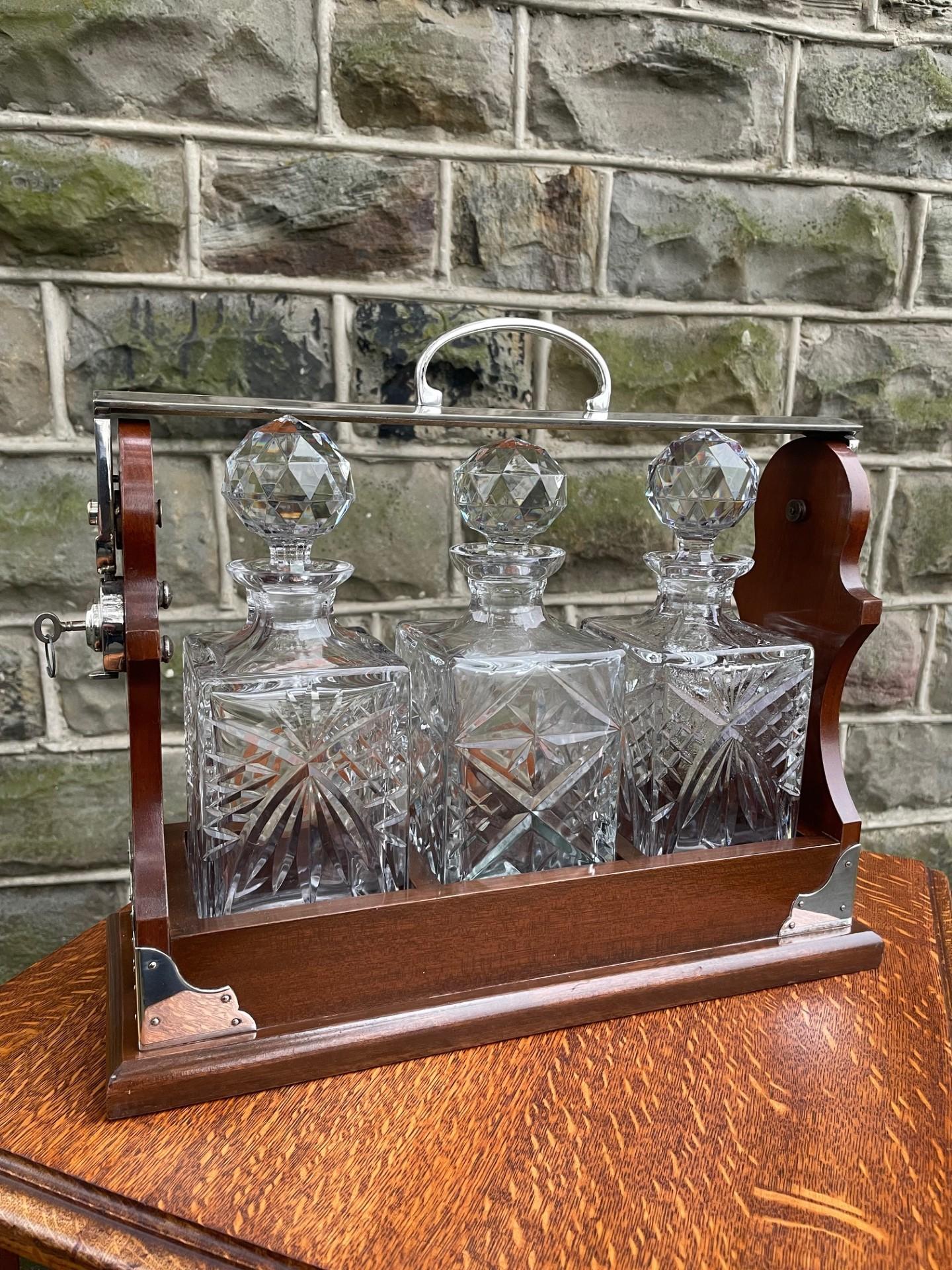 Quality Mahogany & Silver Plated 3 Bottle Drinks Tantalus