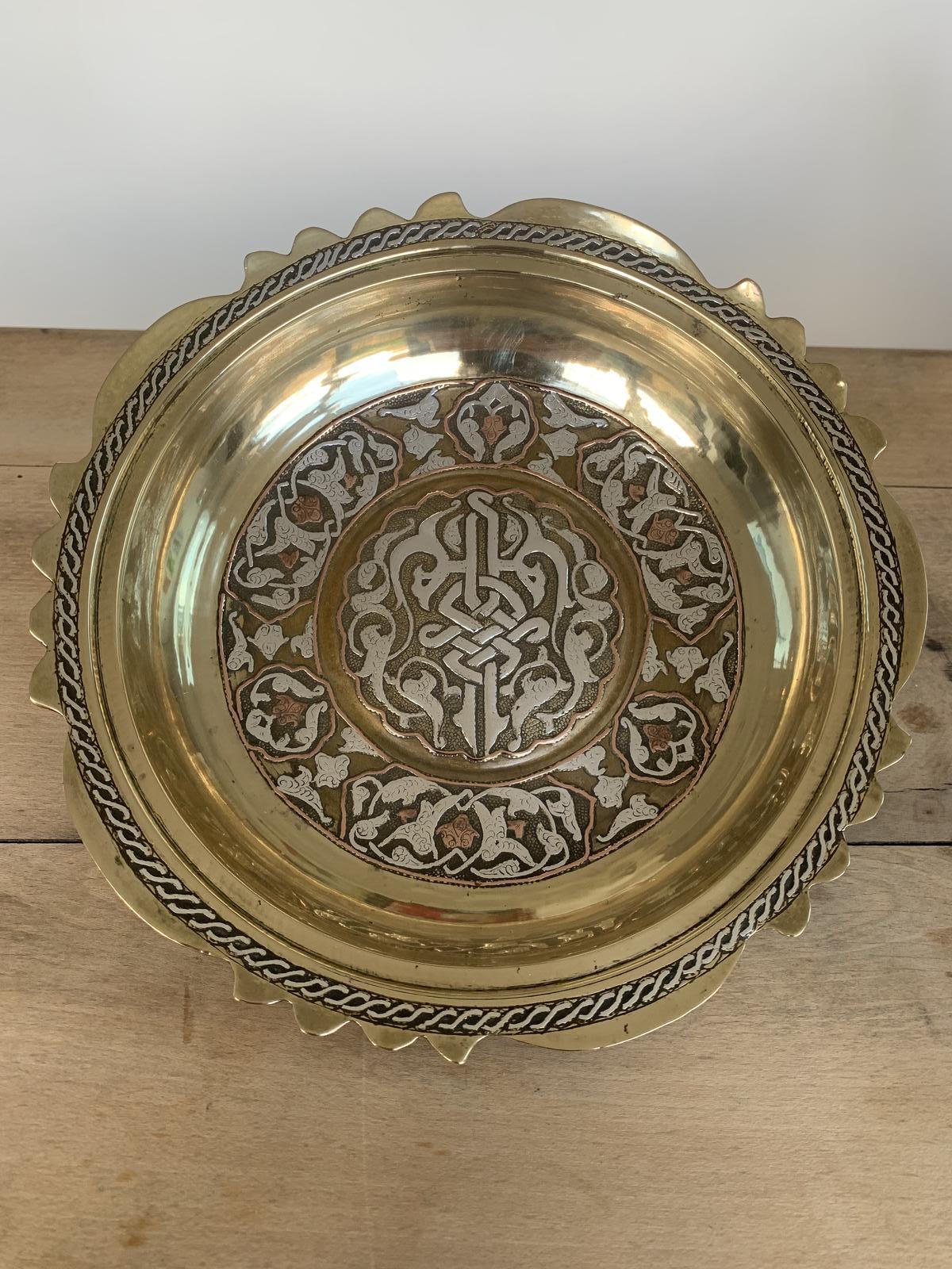 Quality Mamluk / Carioware Brass Bowl Inlaid with Copper & Silver - Chinese Barb Design Rim