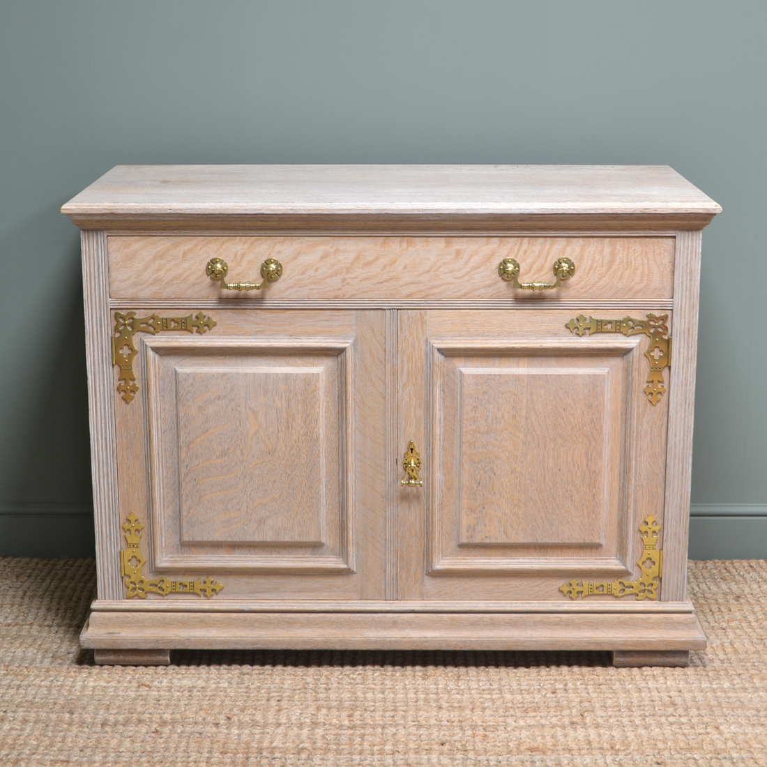 Quality Maple & Co Victorian Limed Oak Antique Cupboard
