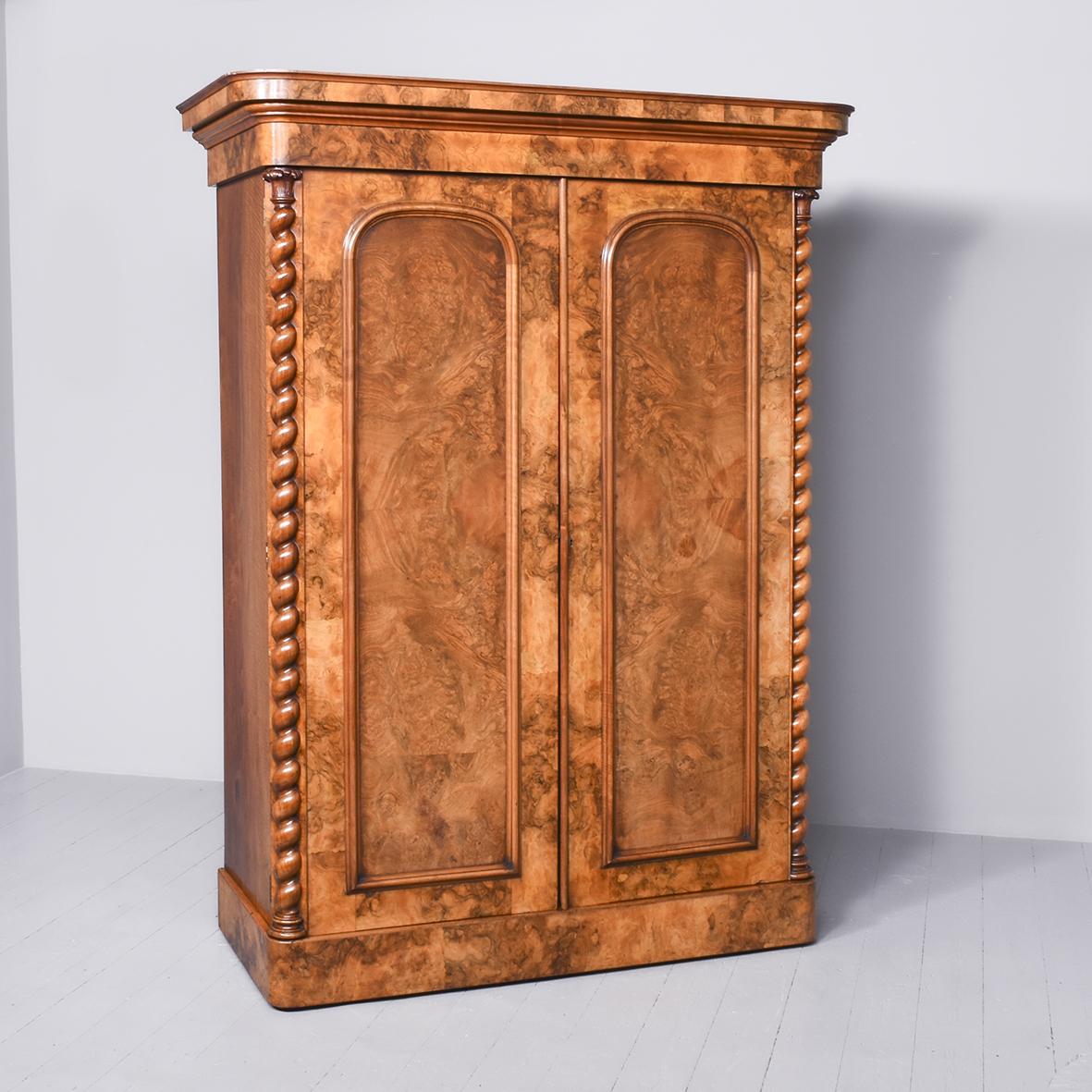Quality Mid Victorian Burr Walnut Two Door Wardrobe