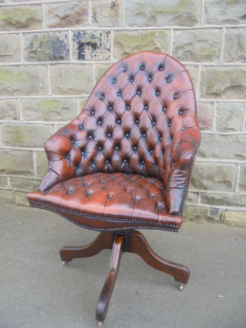 Quality Oak & Leather Button Down Desk Chair