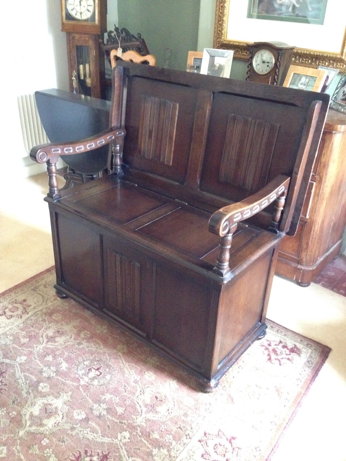 Quality Oak Small Monks Bench / Hall Seat Box Settle c.1920