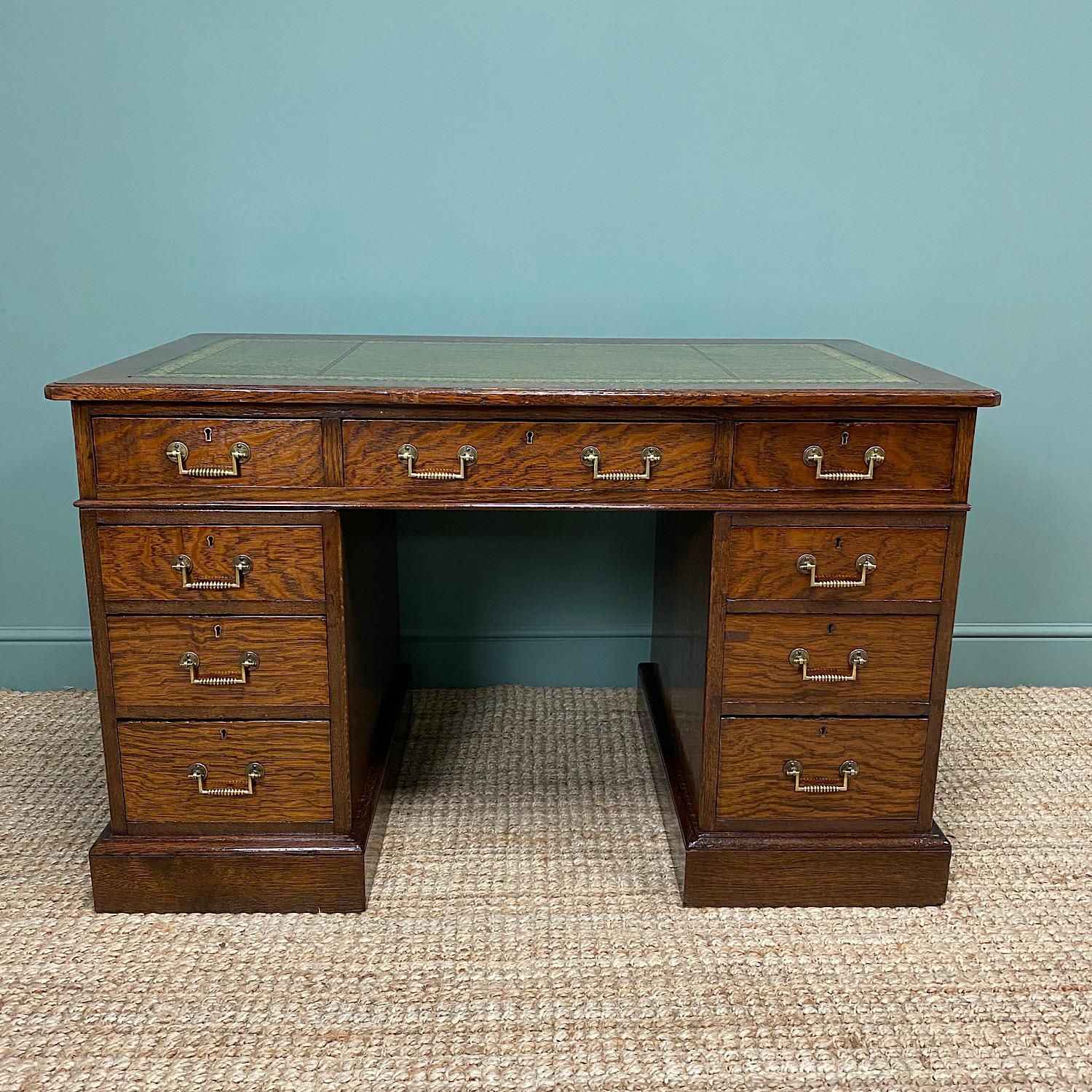 Quality Oak Victorian Antique Pedestal Desk