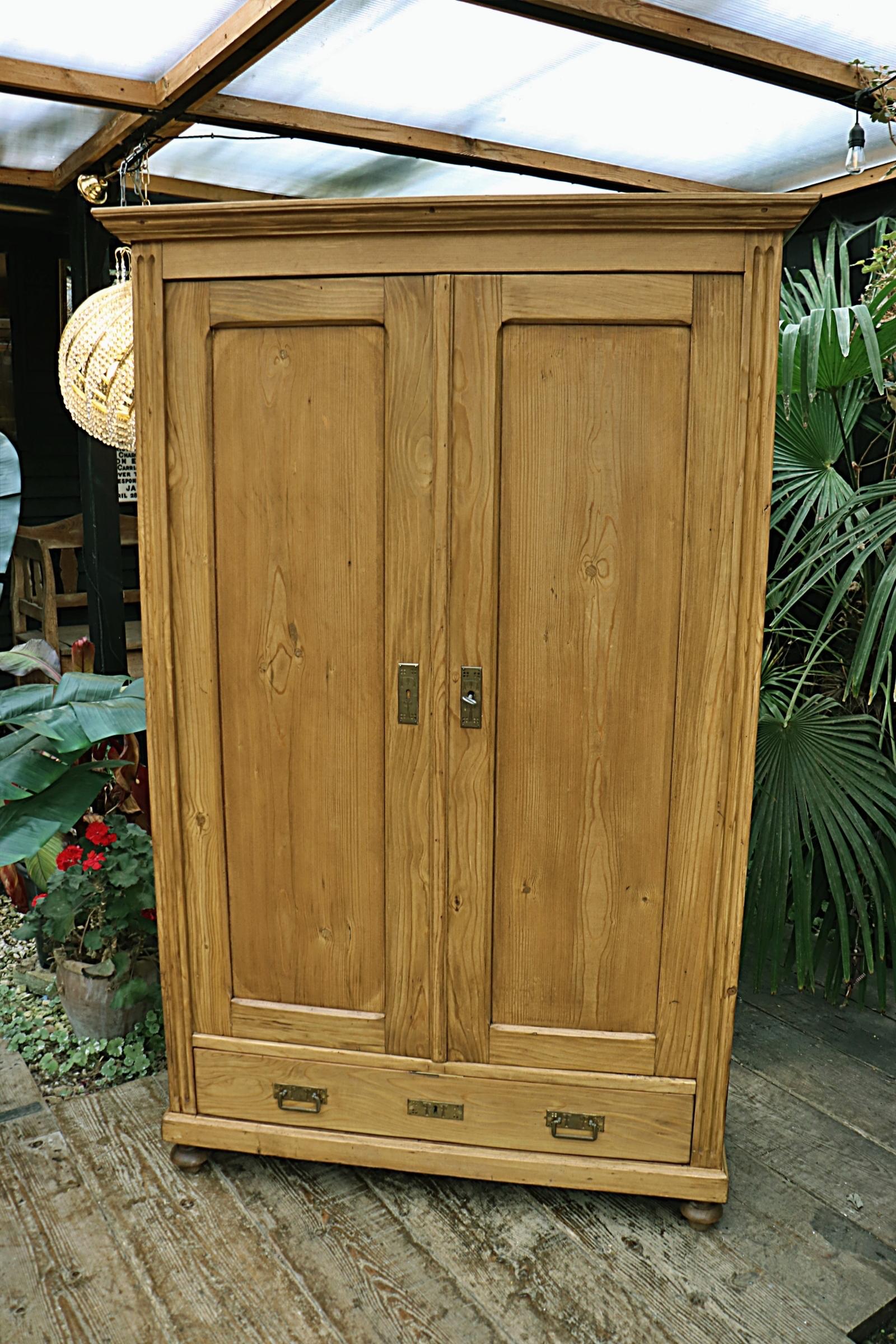 Quality Old Antique Pine Cupboard/ Wardrobe With Shelves
