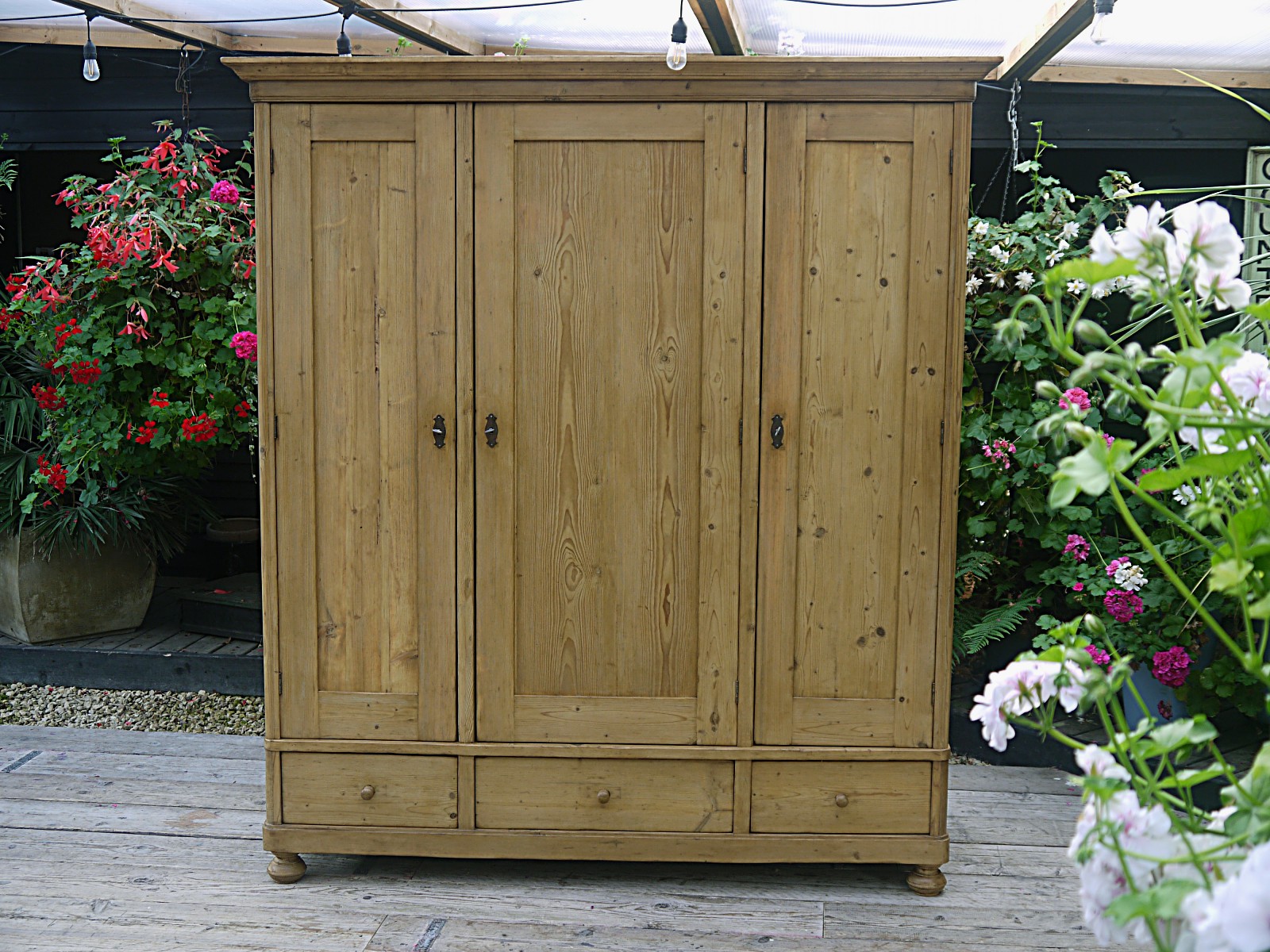 Quality! Old Antique Pine Triple Sectional Wardrobe / Shelves We Deliver / Assemble!