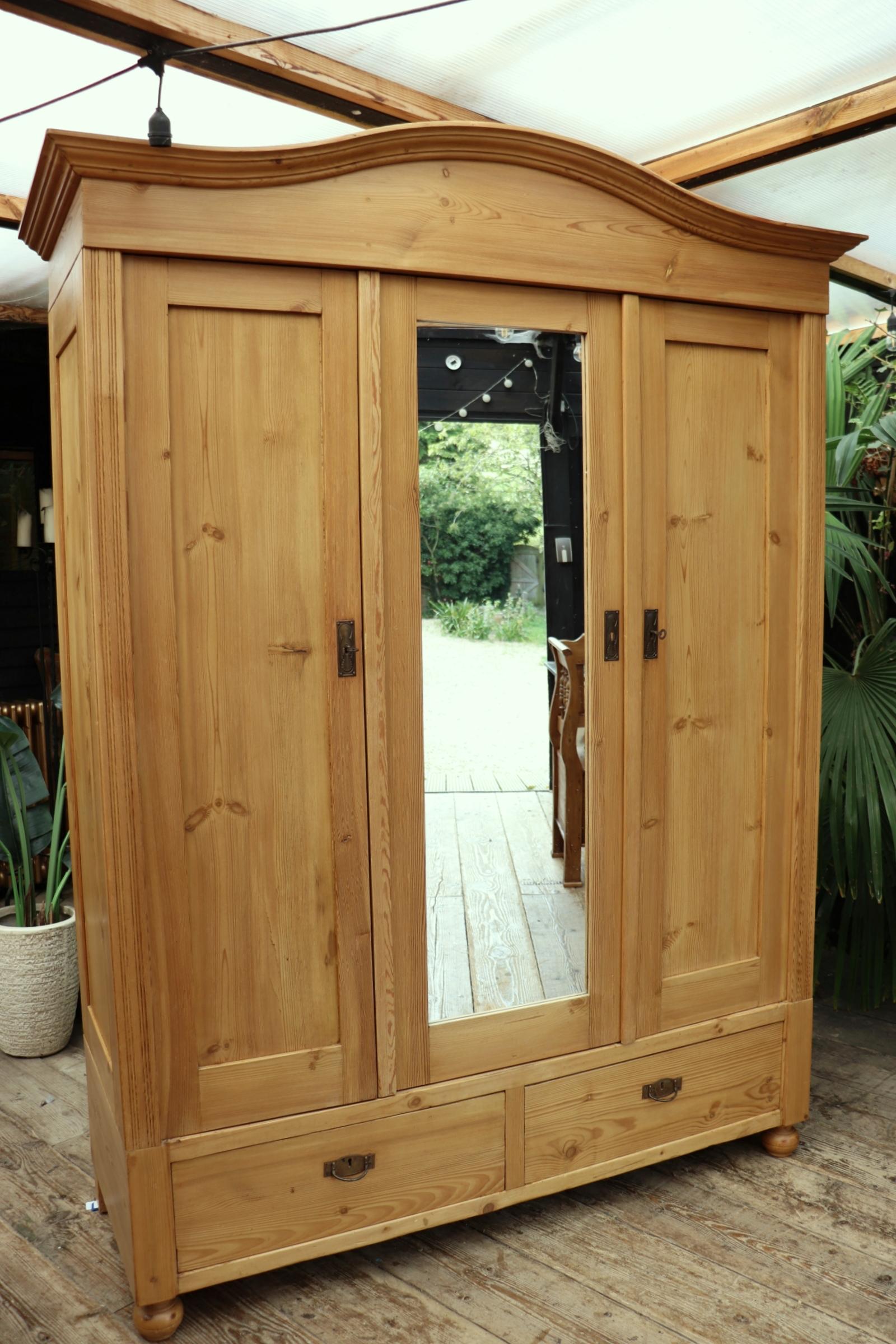 Quality Old Pine Triple Knock Down Combination Wardrobe