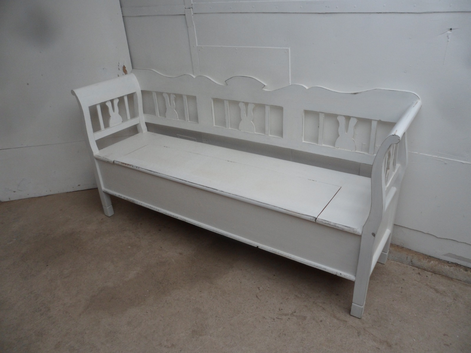 Quality Painted White Old Pine 3 Seater Box Settle / Bench
