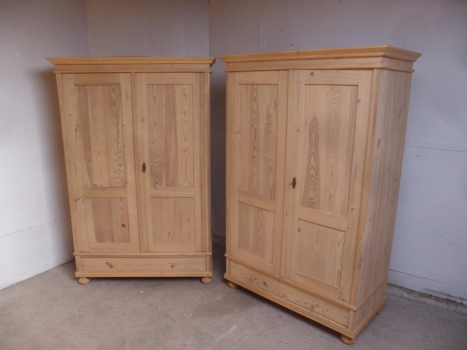 Quality Pair of Antique Pine Traditional Knockdown Wardrobes to wax / paint