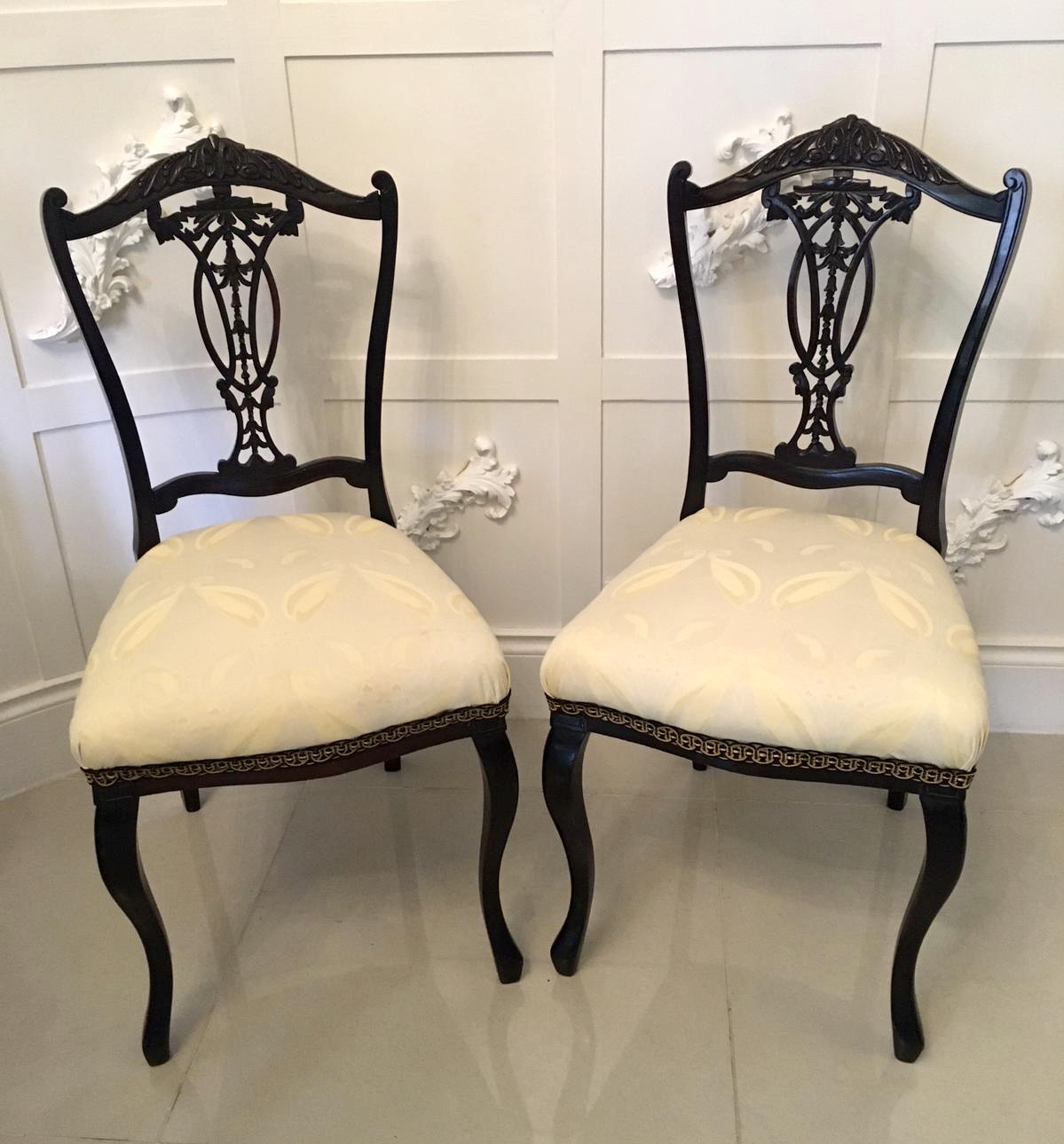 Quality Pair of Antique Victorian Carved Ebonised Side / Desk Chairs