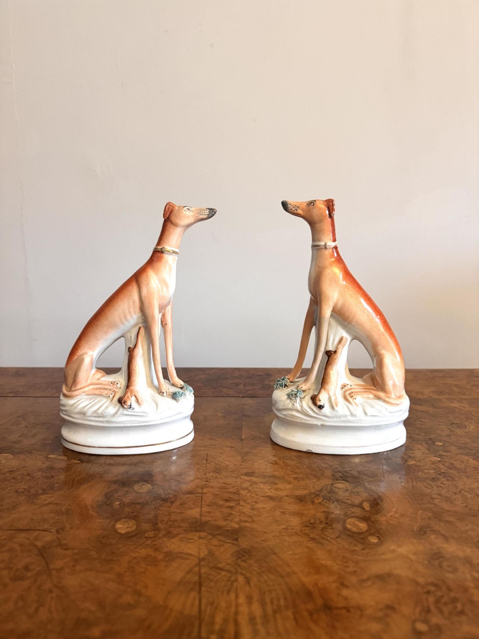Quality Pair of Antique Victorian Staffordshire Greyhounds