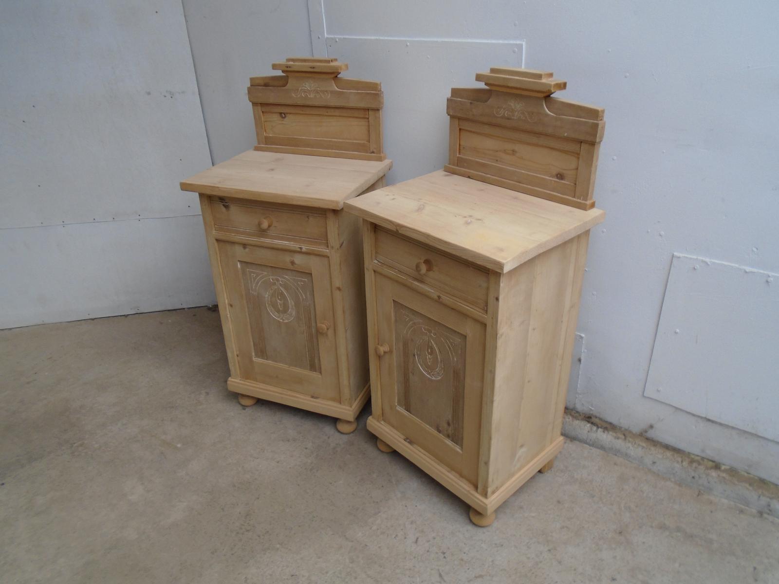 Quality Pair of Art Nouveau Antique Pine Bedside Cabinets to wax / paint