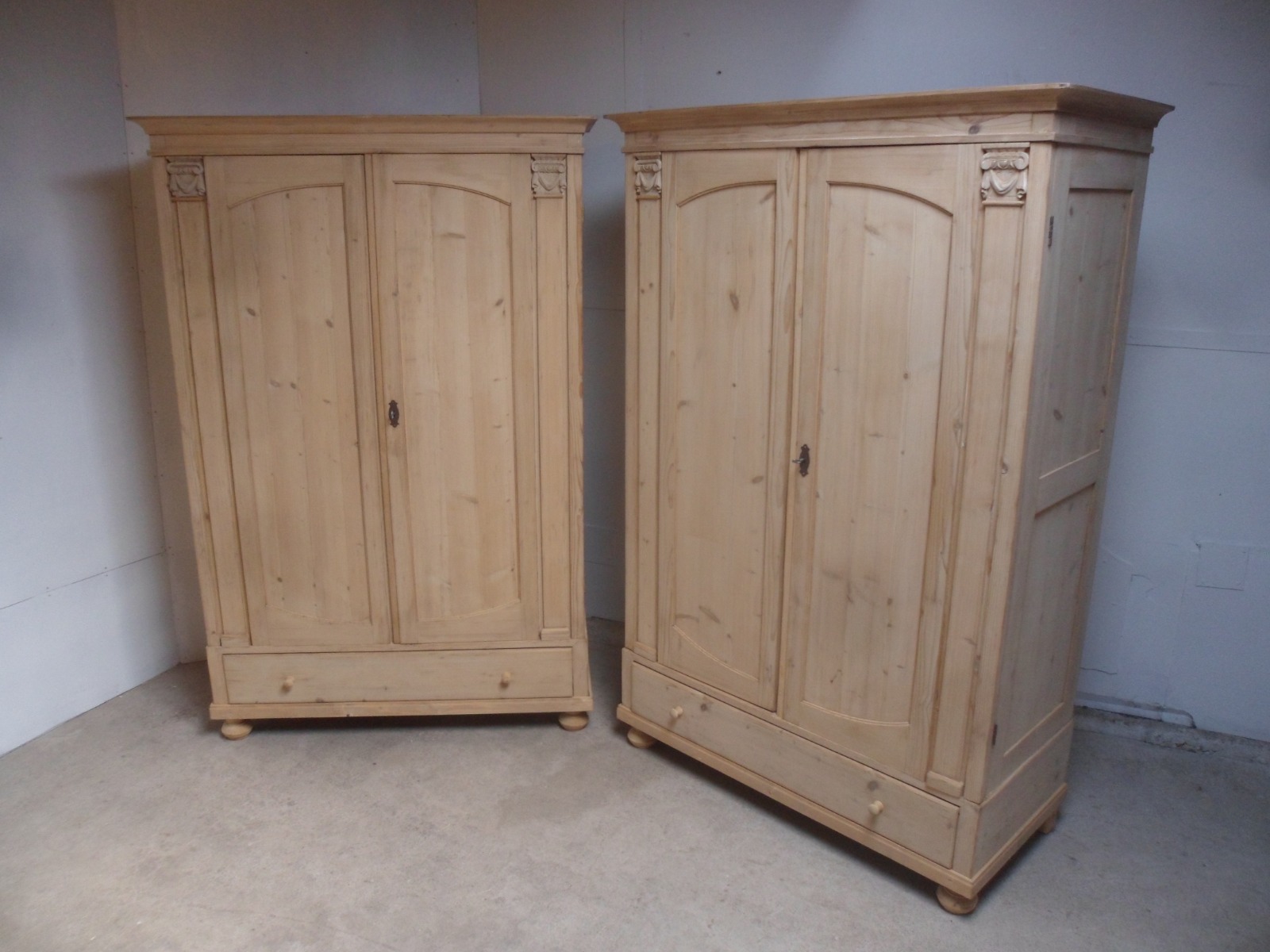 Quality Pair of Czech Antique Pine Knockdown Wardrobes to wax / paint