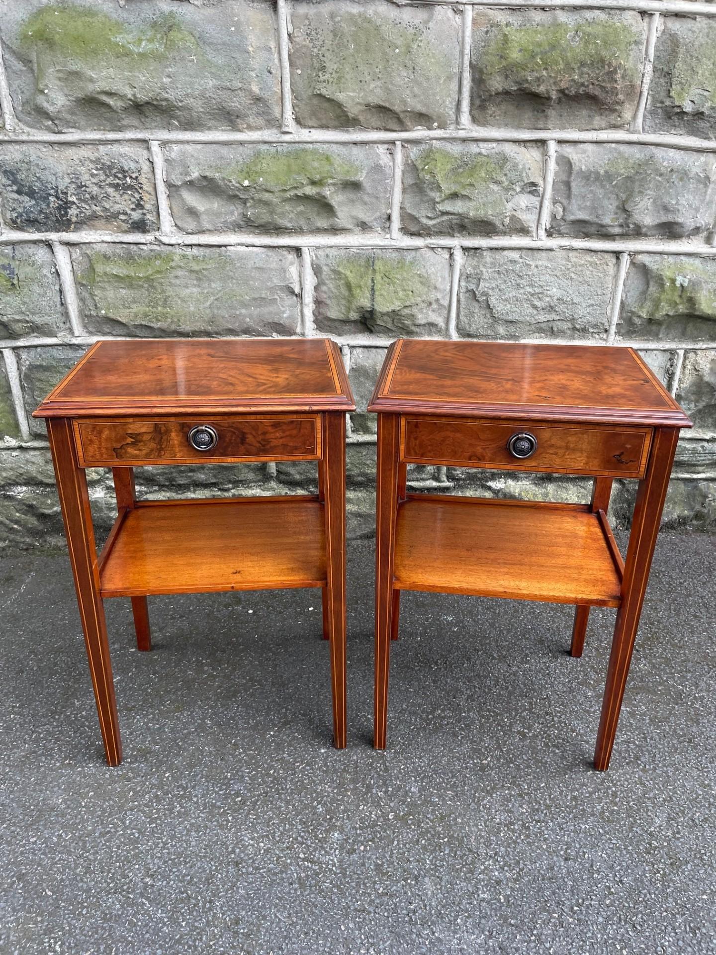 Quality Pair of Inlaid Walnut Single Drawer Bedside Tables