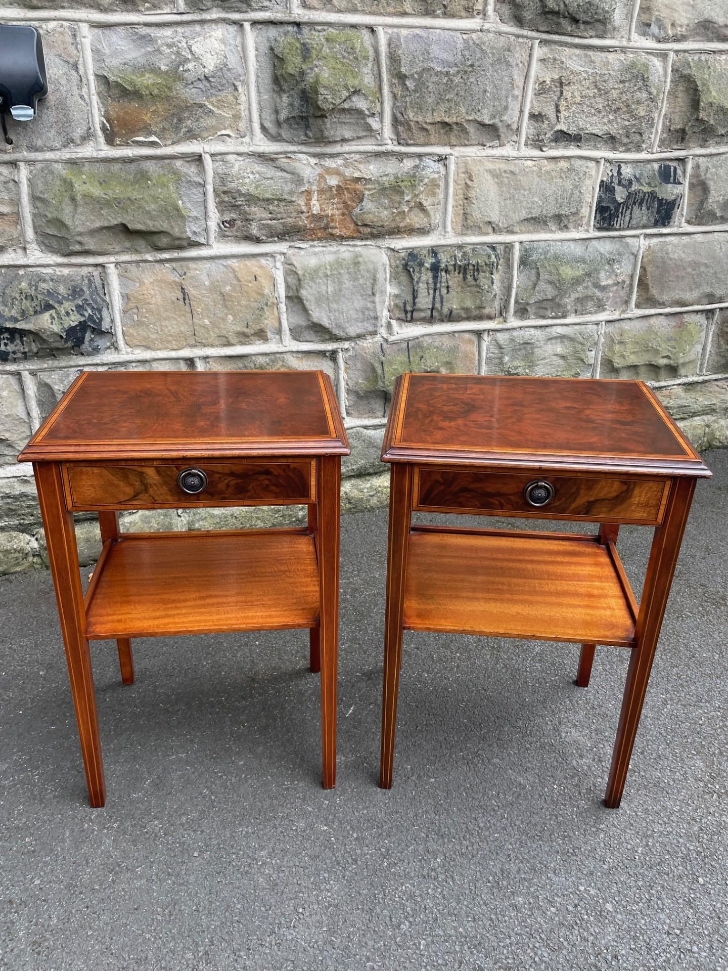 Quality Pair of Inlaid Walnut Single Drawer Bedside Tables