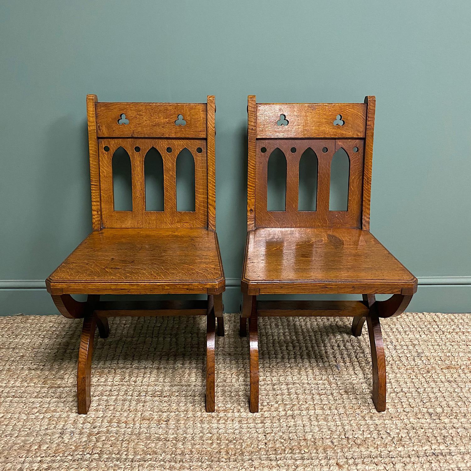Quality Pair of Oak Hall Chairs by Shoolbred
