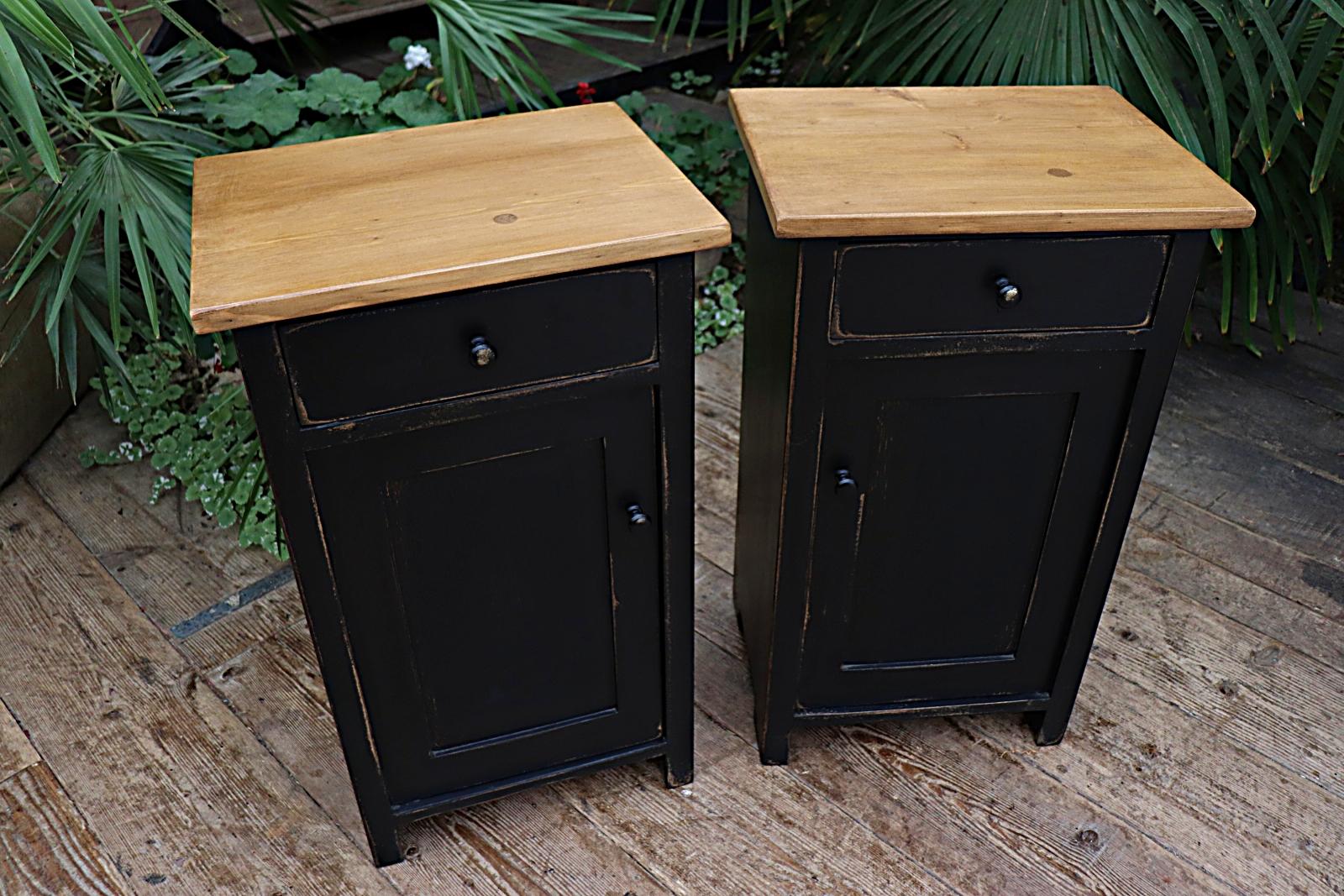 Quality Pair of Old Pine / Black Painted Bedside Cabinets / Cupboards / Tables