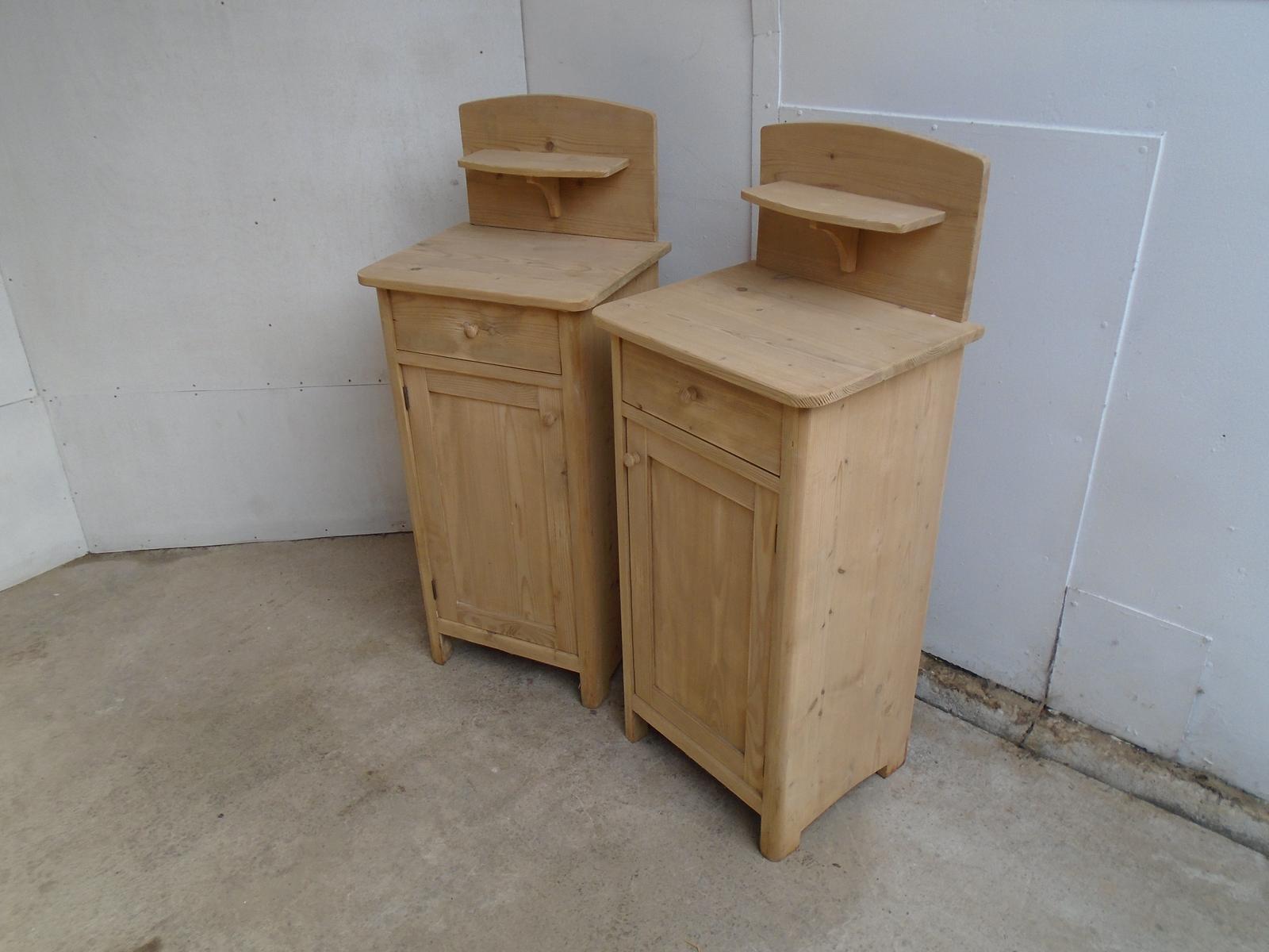 Quality Pair of Tall Antique Pine Upstand Bedside Cabinets to wax / paint