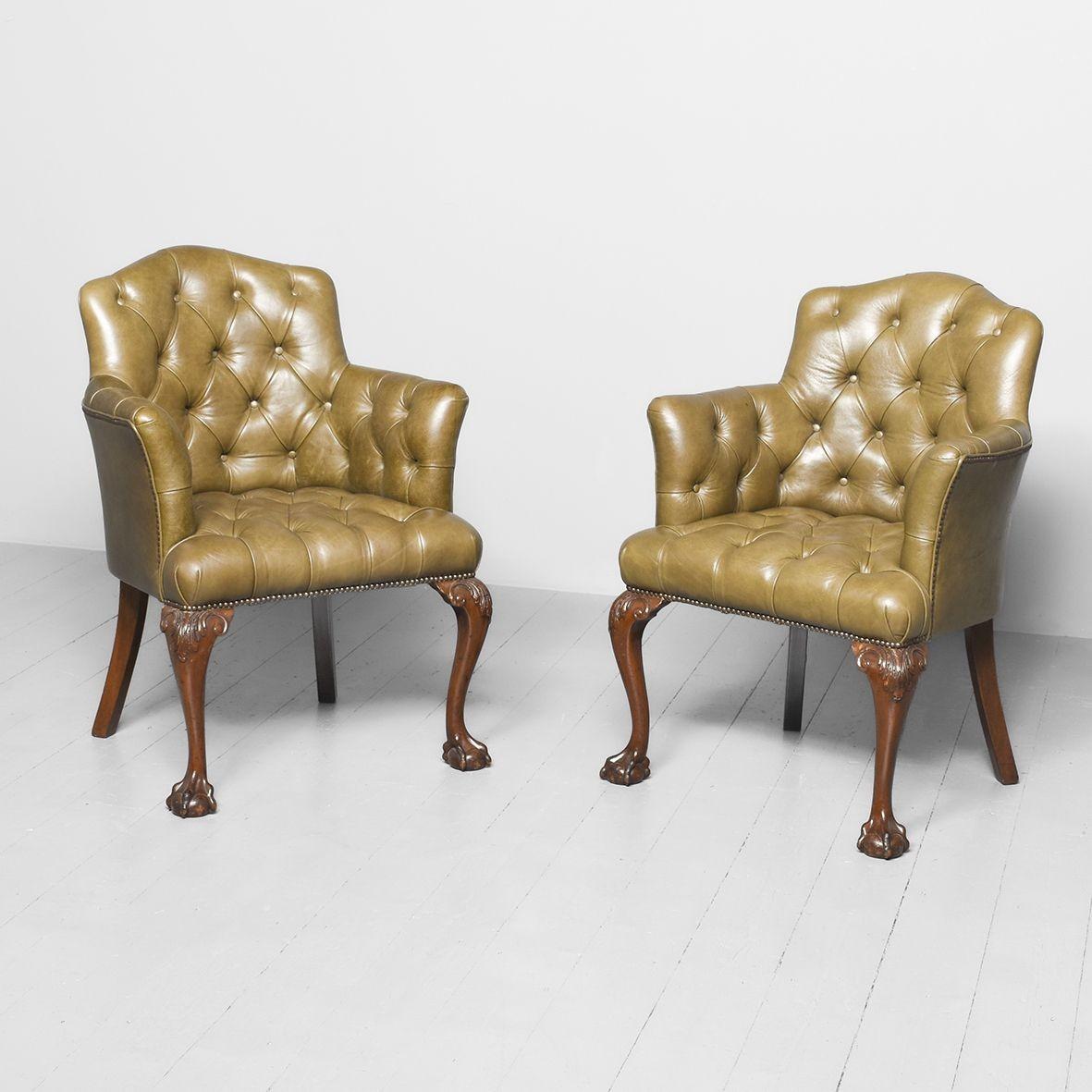 Quality Pair of Traditionally Upholstered Mahogany Library Chairs
