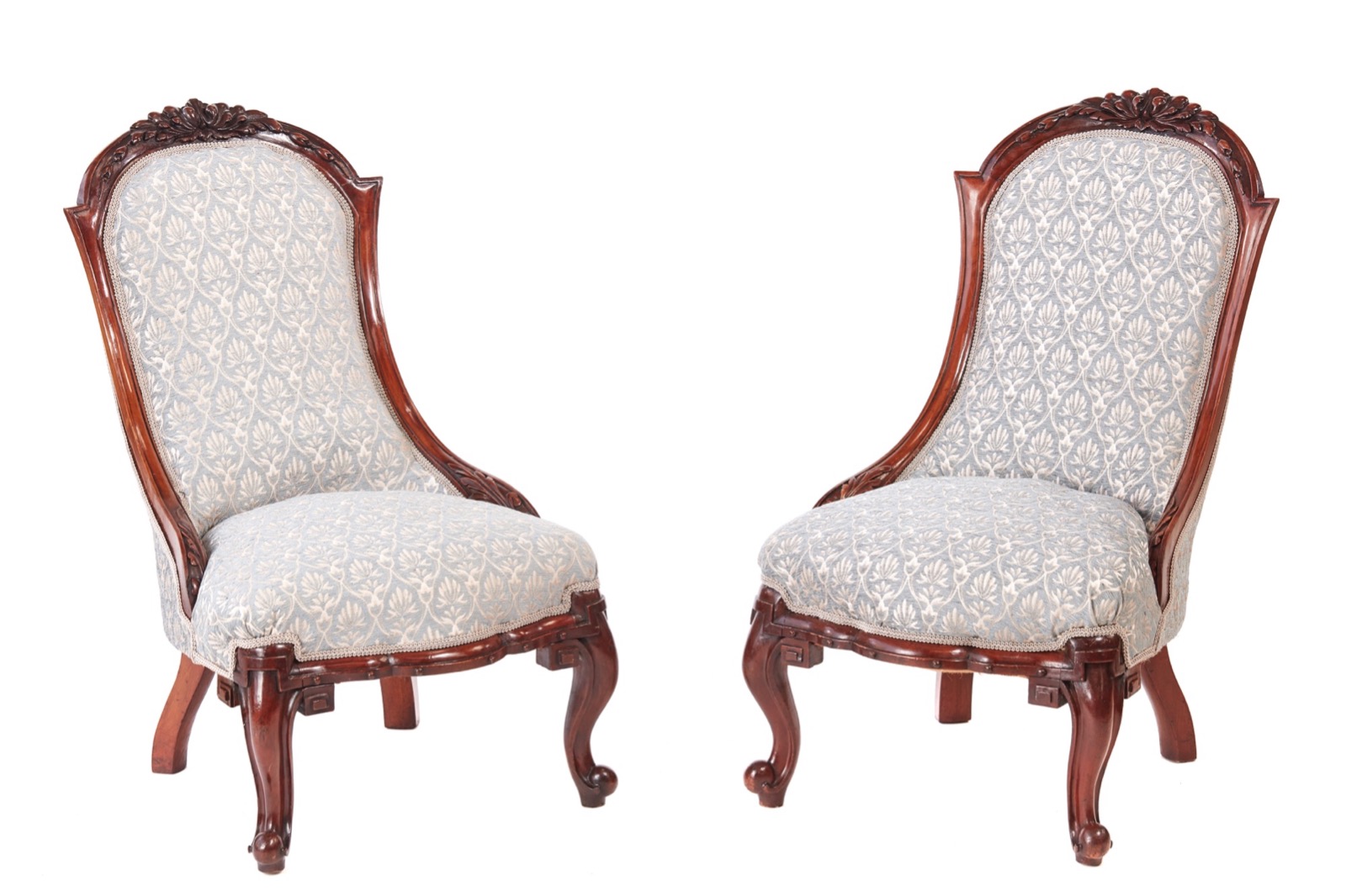 Quality Pair of Victorian Carved Walnut Ladies Chairs