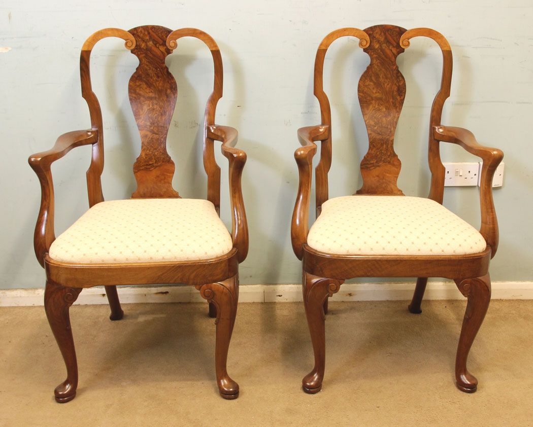 Quality Pair of Walnut Armchairs Queen Anne Style C.1920 (1 of 1)
