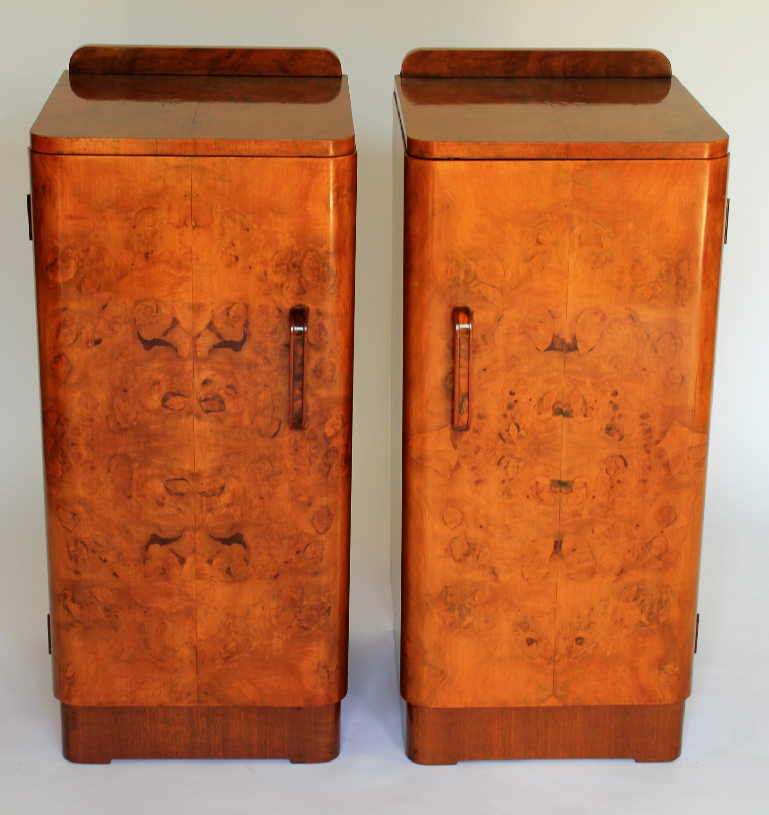 Quality Pair of Walnut Art Deco Bedside Cupboards