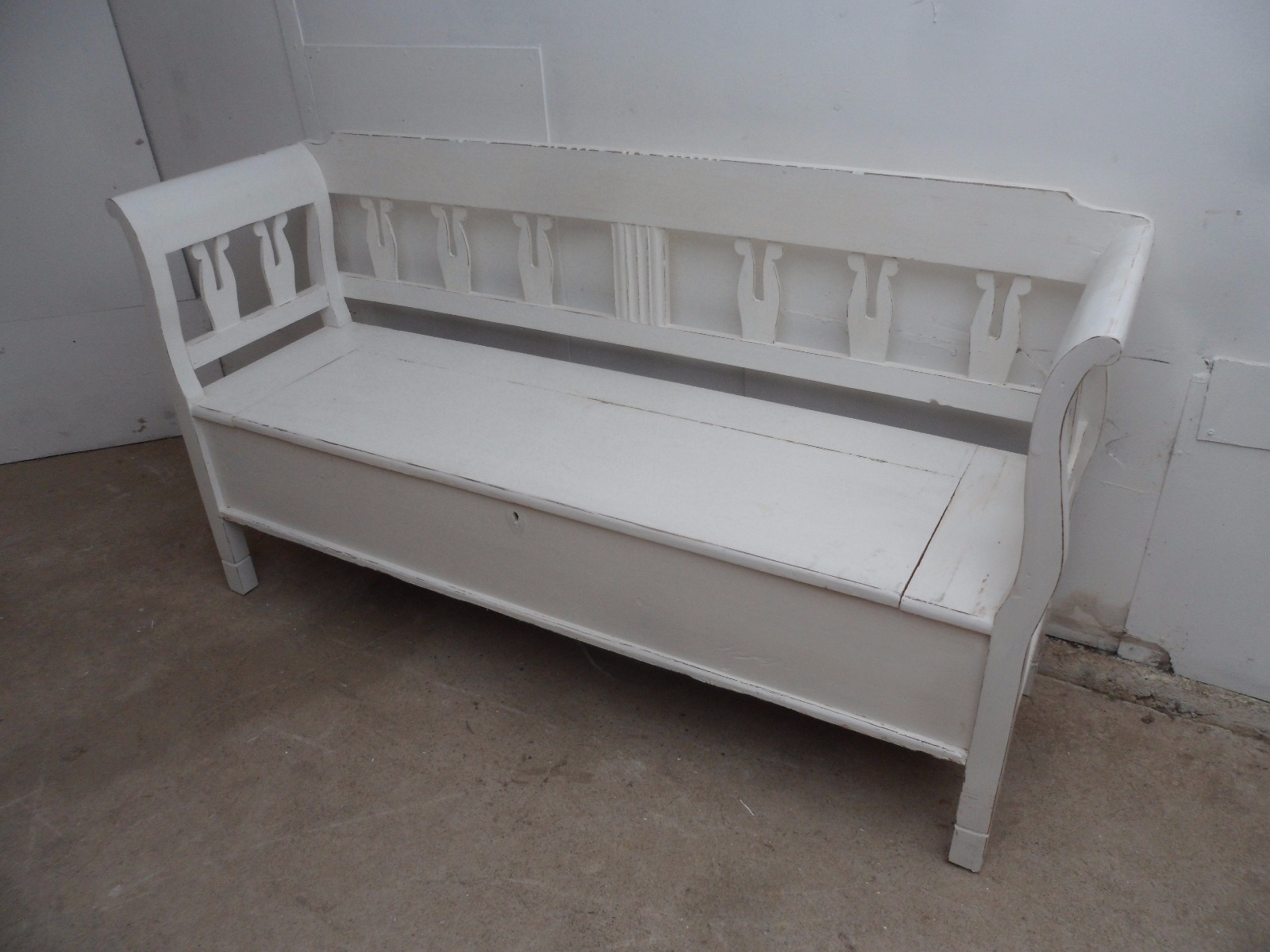 Quality Pine Painted White Shabby Chic 3 Seater Box Settle / Bench