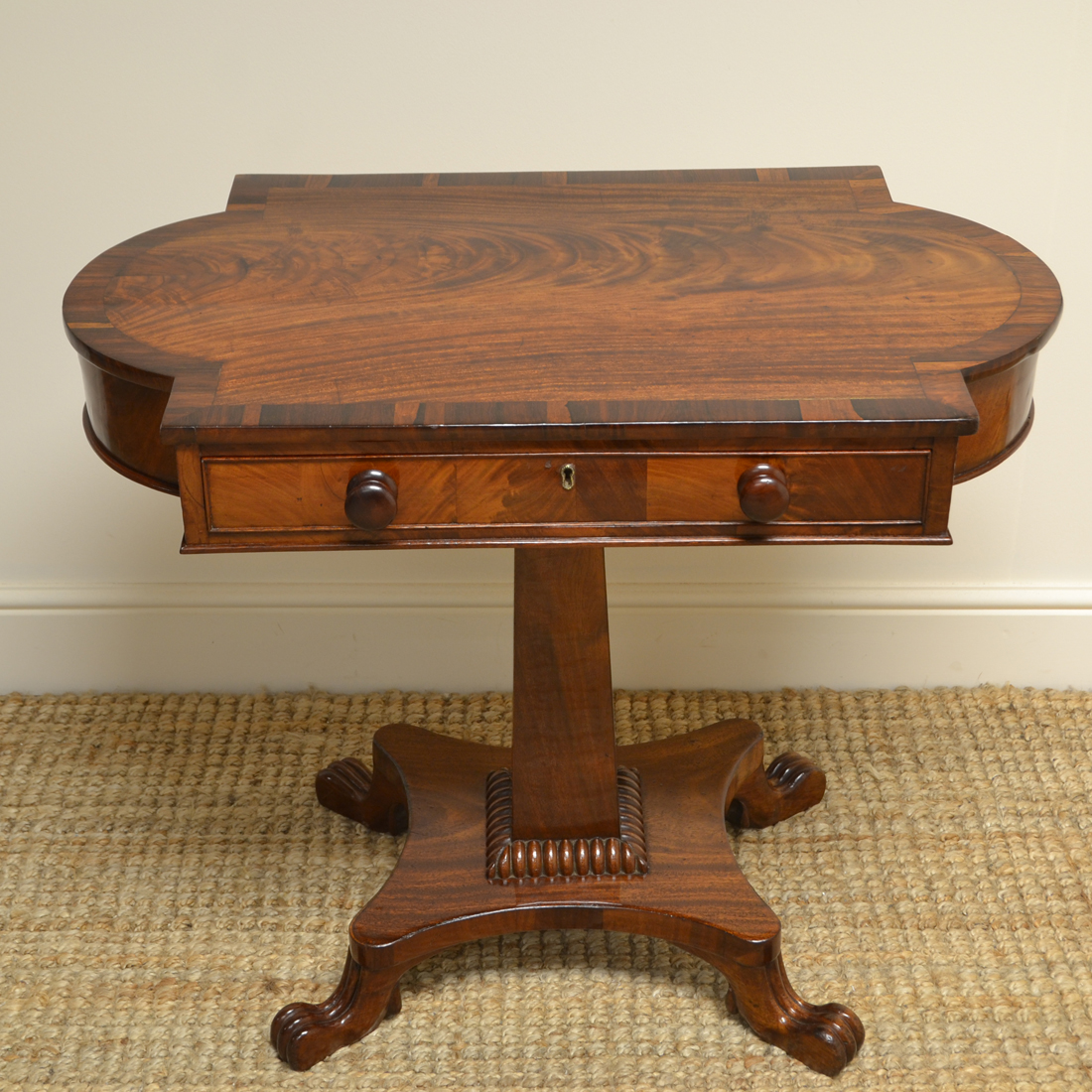Quality Regency Figured Mahogany Antique Pedestal Antique Side Table