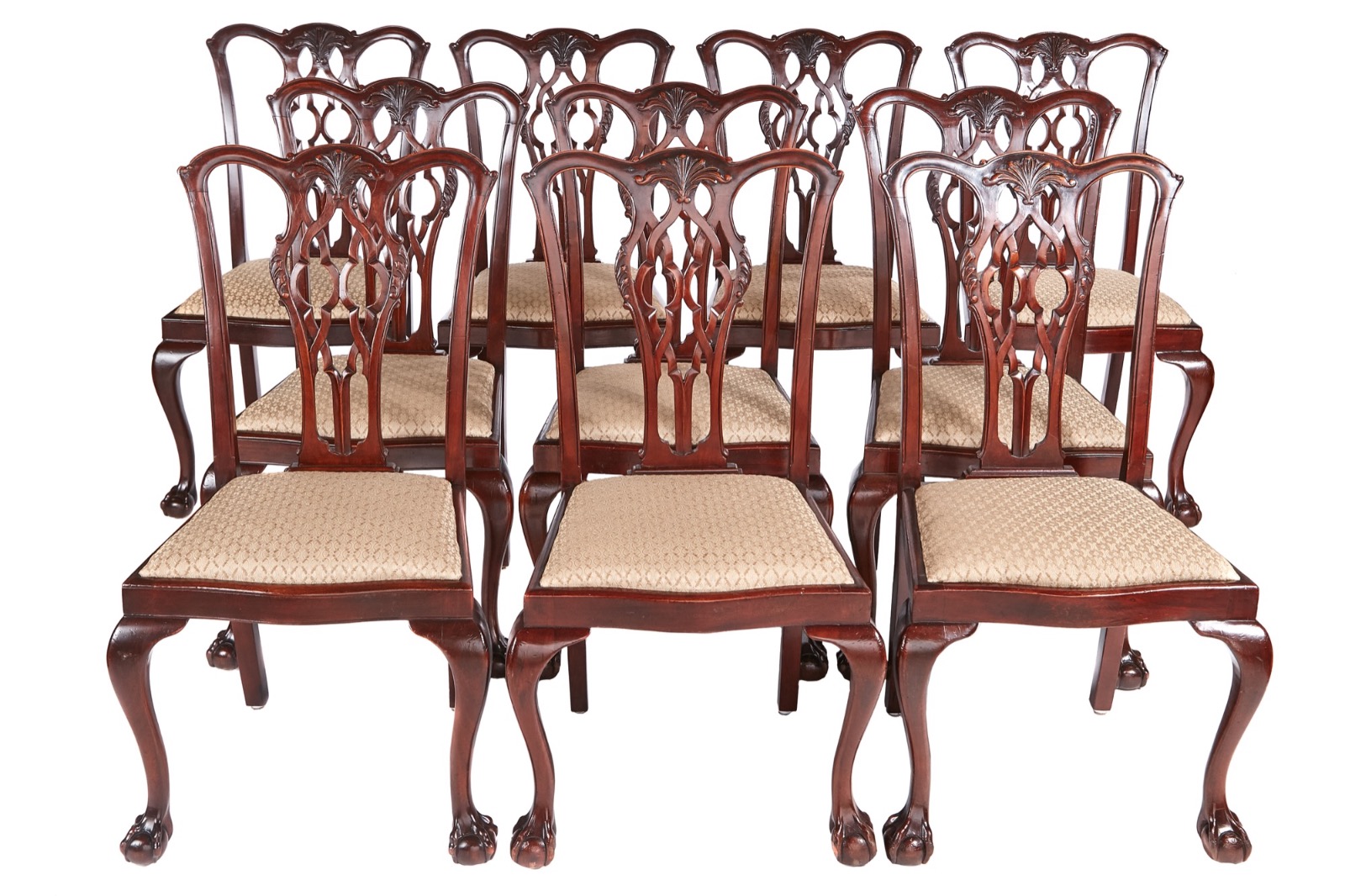Quality Set of 10 Antique Mahogany Chippendale Style Dining Chairs
