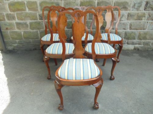 Quality Set of 6 Figured Walnut Dining Chairs / Kitchen Chairs c.1900