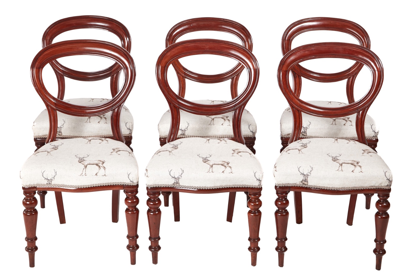 Quality Set of 6 Victorian Mahogany Balloon Back Dining Chairs