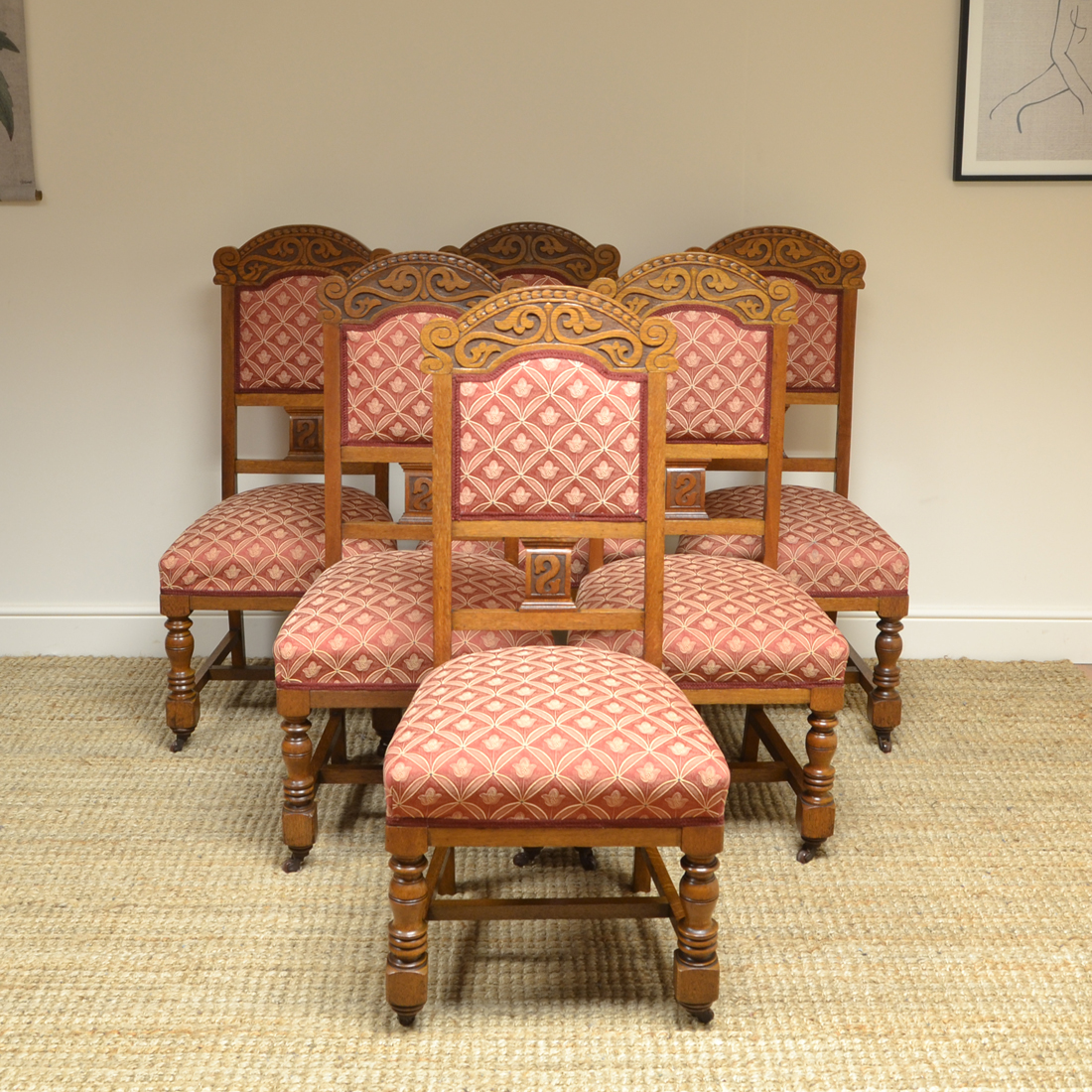 Quality Set of Six Victorian Oak Antique Dining Chairs