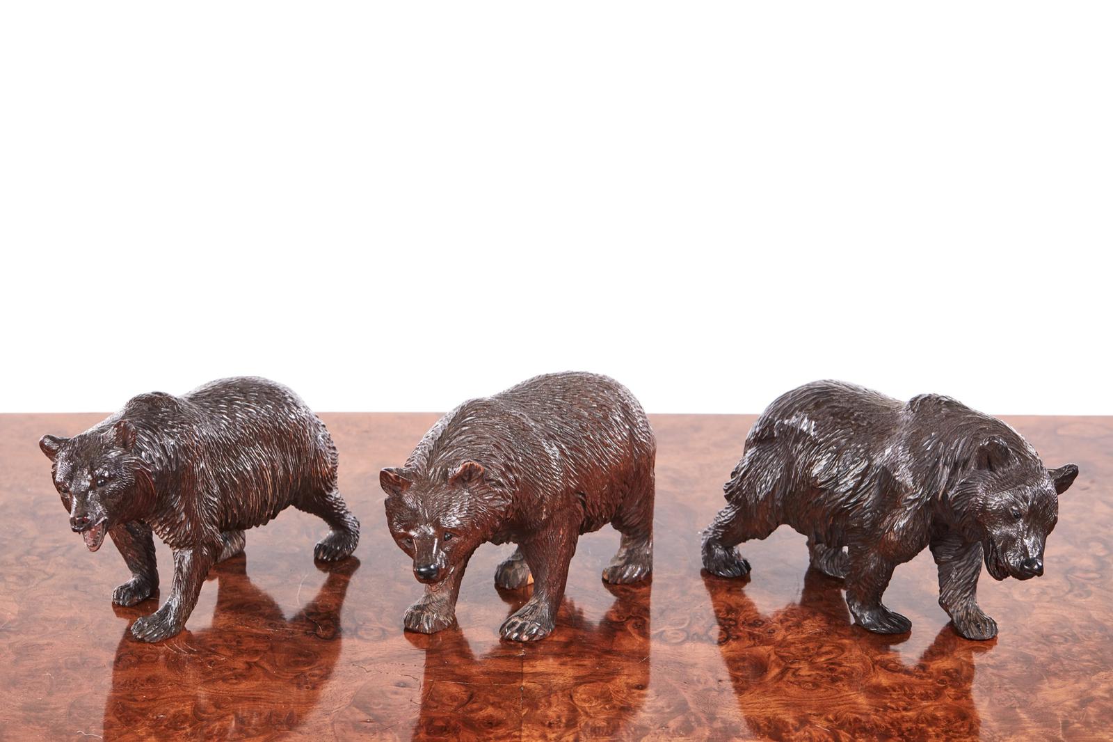 Quality Set of Three Antique Carved Black Forest Bears