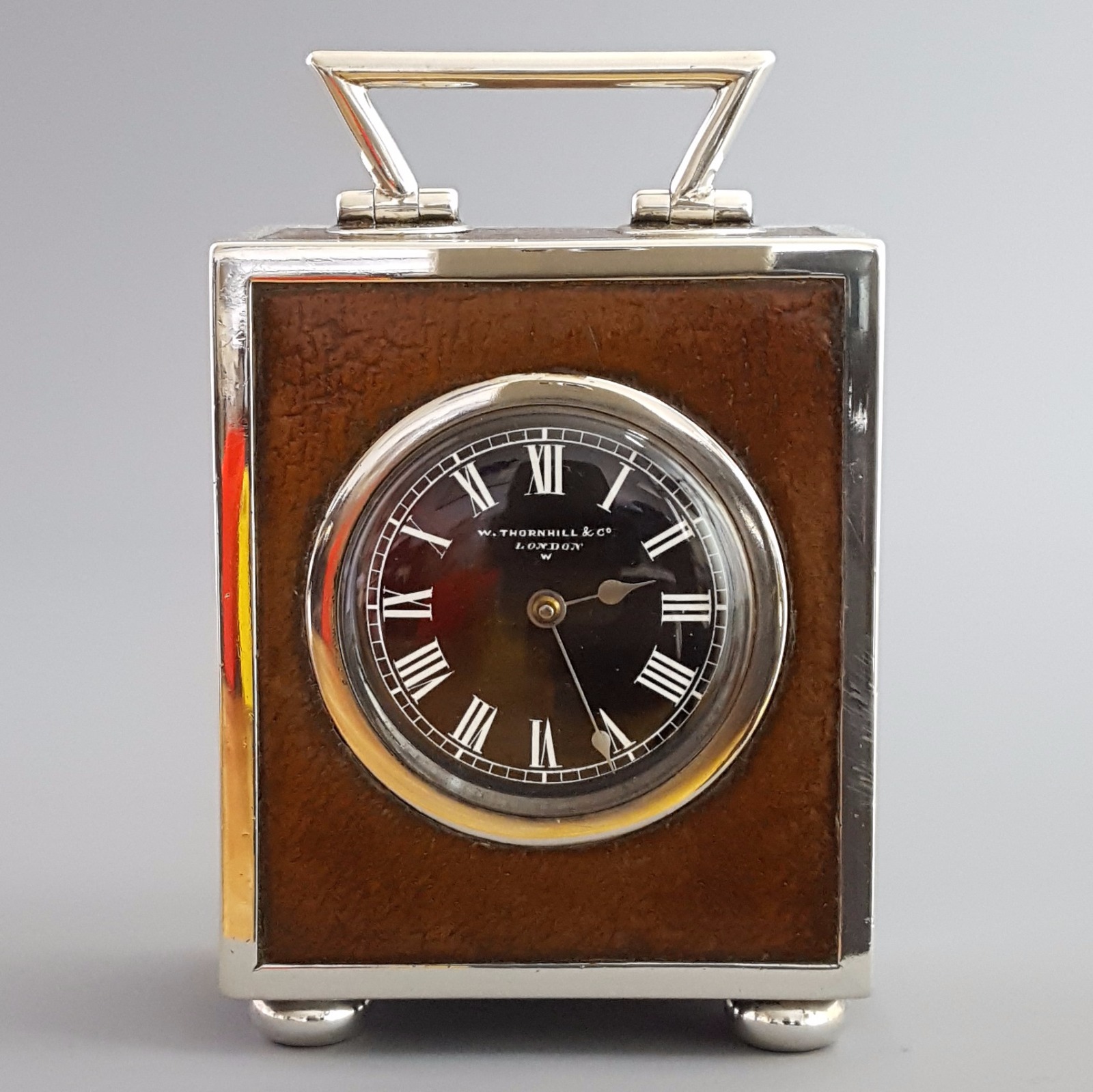 Quality Silver & Leather Covered Desk Clock Thornhill & Co London 1884