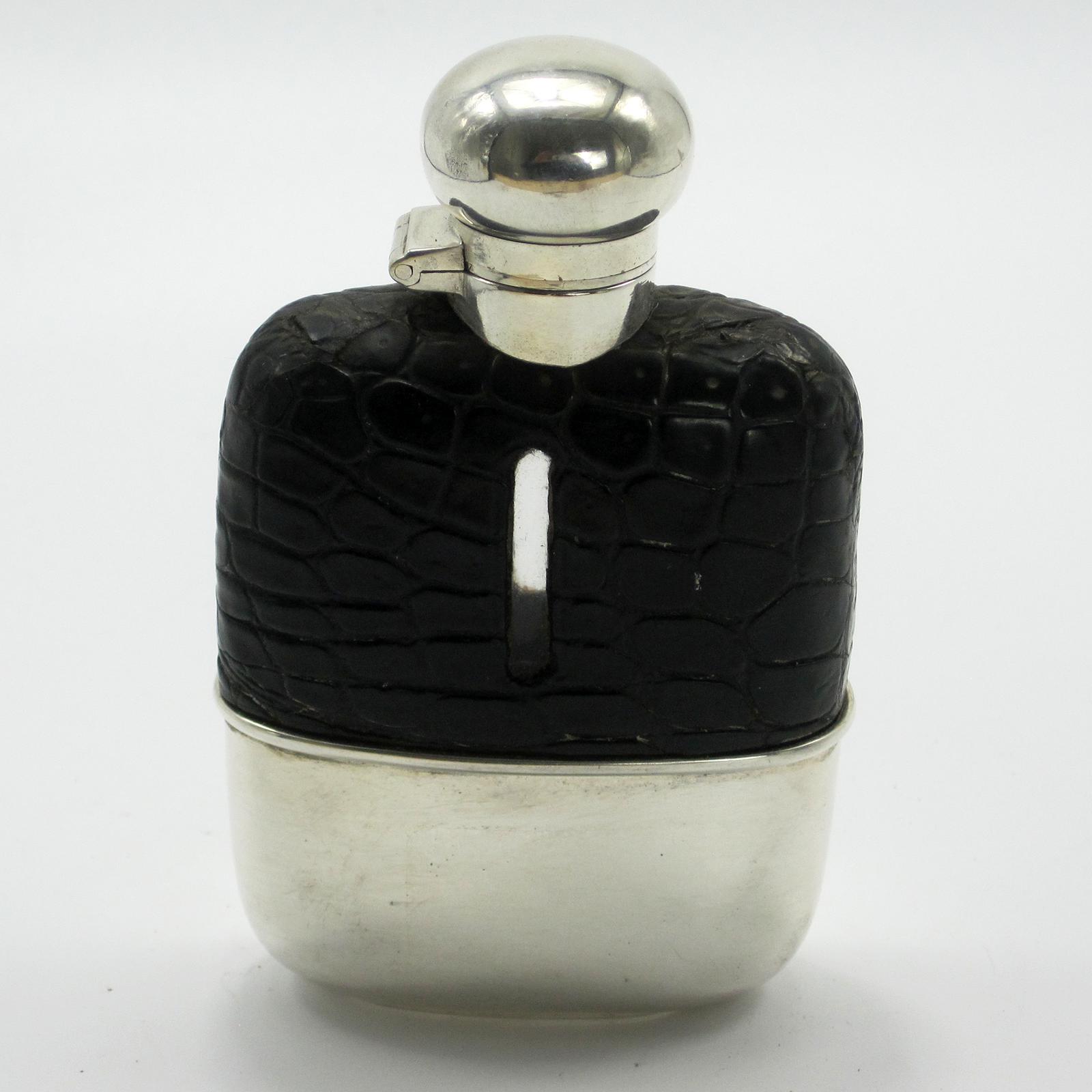 Quality Silver Plate & Leather Crocodile Hip Flask