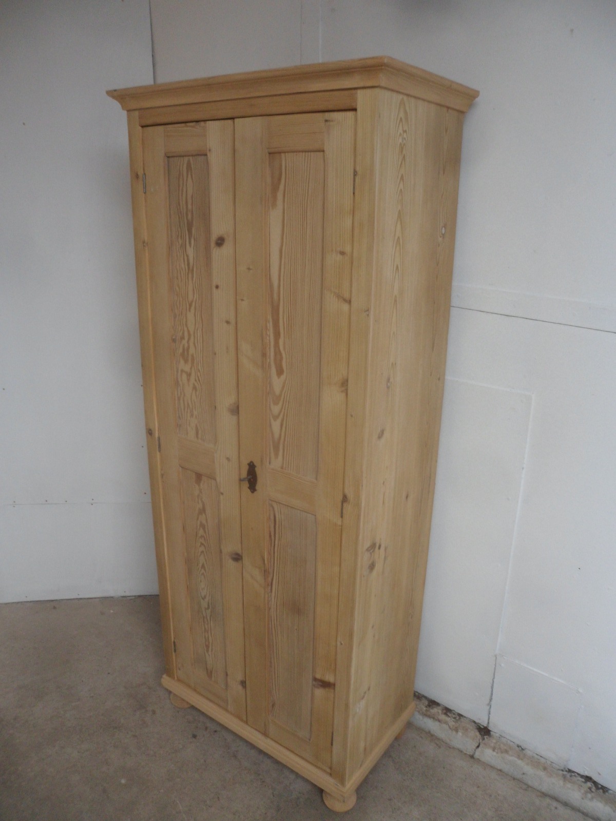 Quality Slim / Narrow Antique Pine 2 Door Storage Cupboard to wax / paint