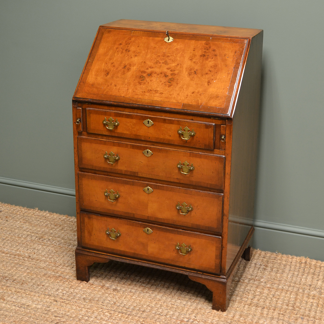 Quality Small Edwardian Figured Walnut Antique Bureau