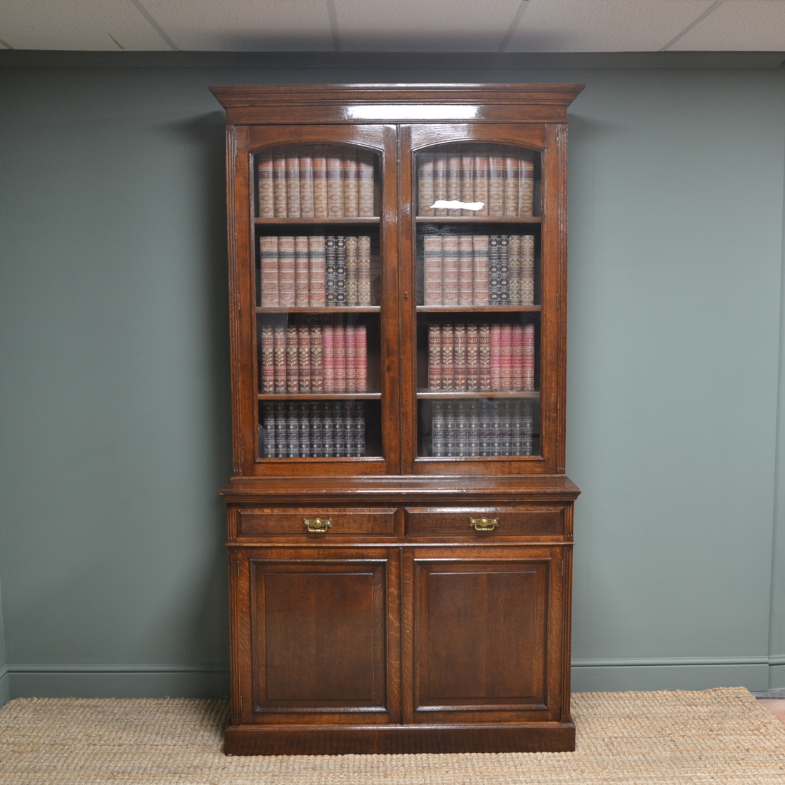 Quality Solid Oak Victorian Antique Bookcase on Cupboard