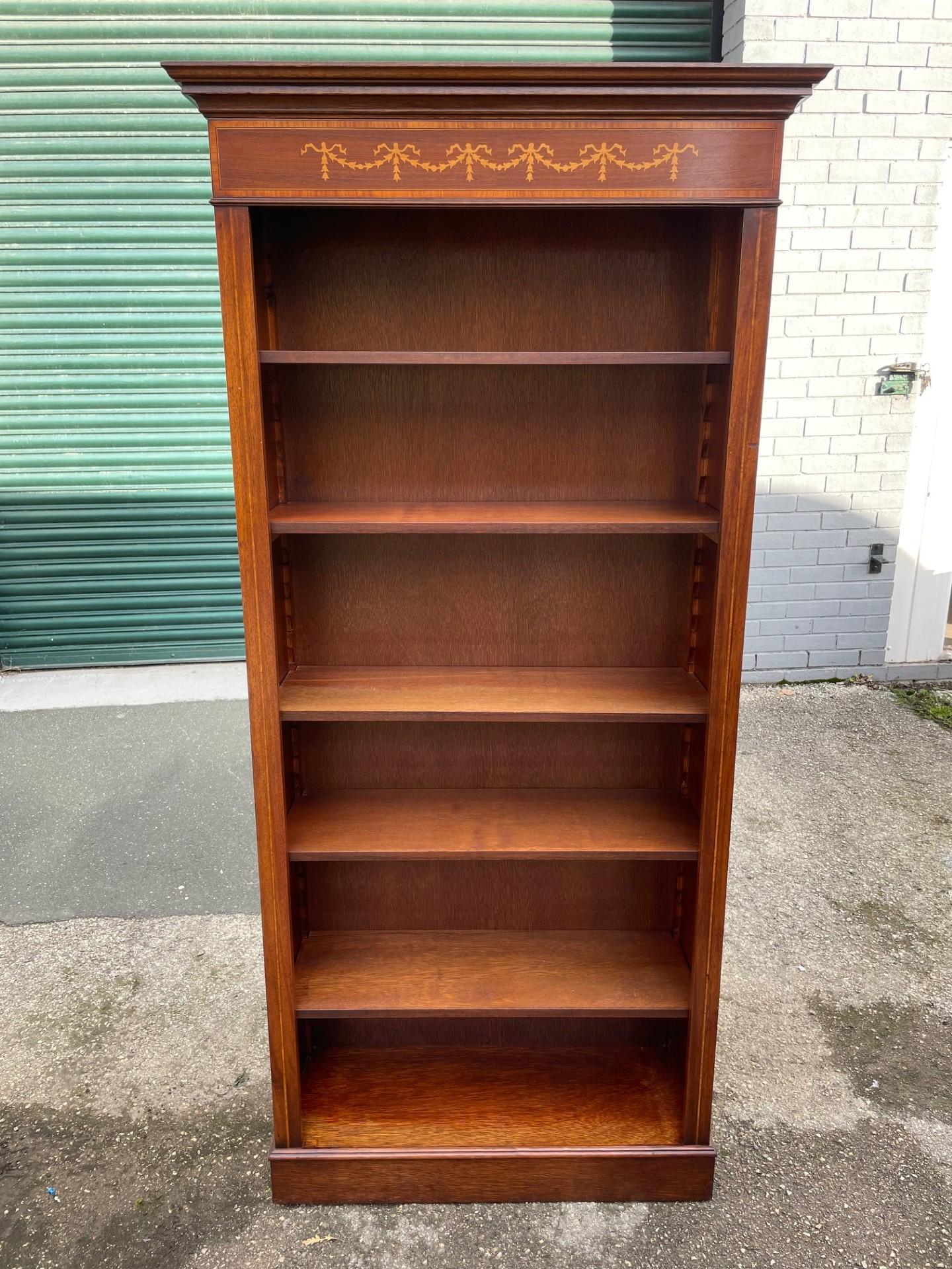 Quality Tall Inlaid Mahogany Open Library Bookcase