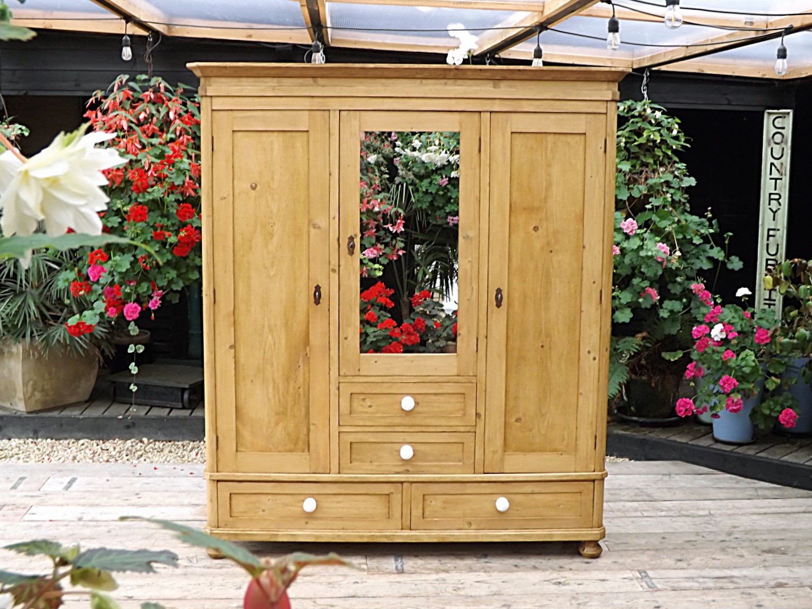 Quality! Unusual Old Antique Pine Triple Sectional Wardrobe-We Deliver / Assemble!
