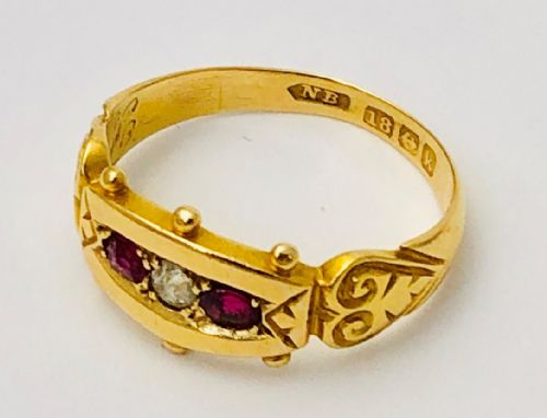 Quality Victorian 18ct Gold Natural Ruby & Diamond Set Ring