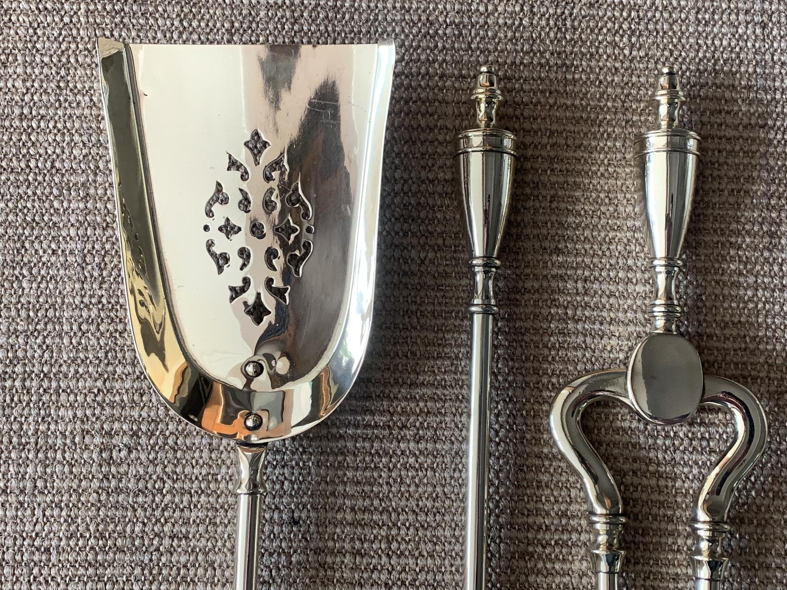 Quality Victorian Adams Style Brass Fire Irons Poker Tongs Shovel / Brass Fire Tools c.1895