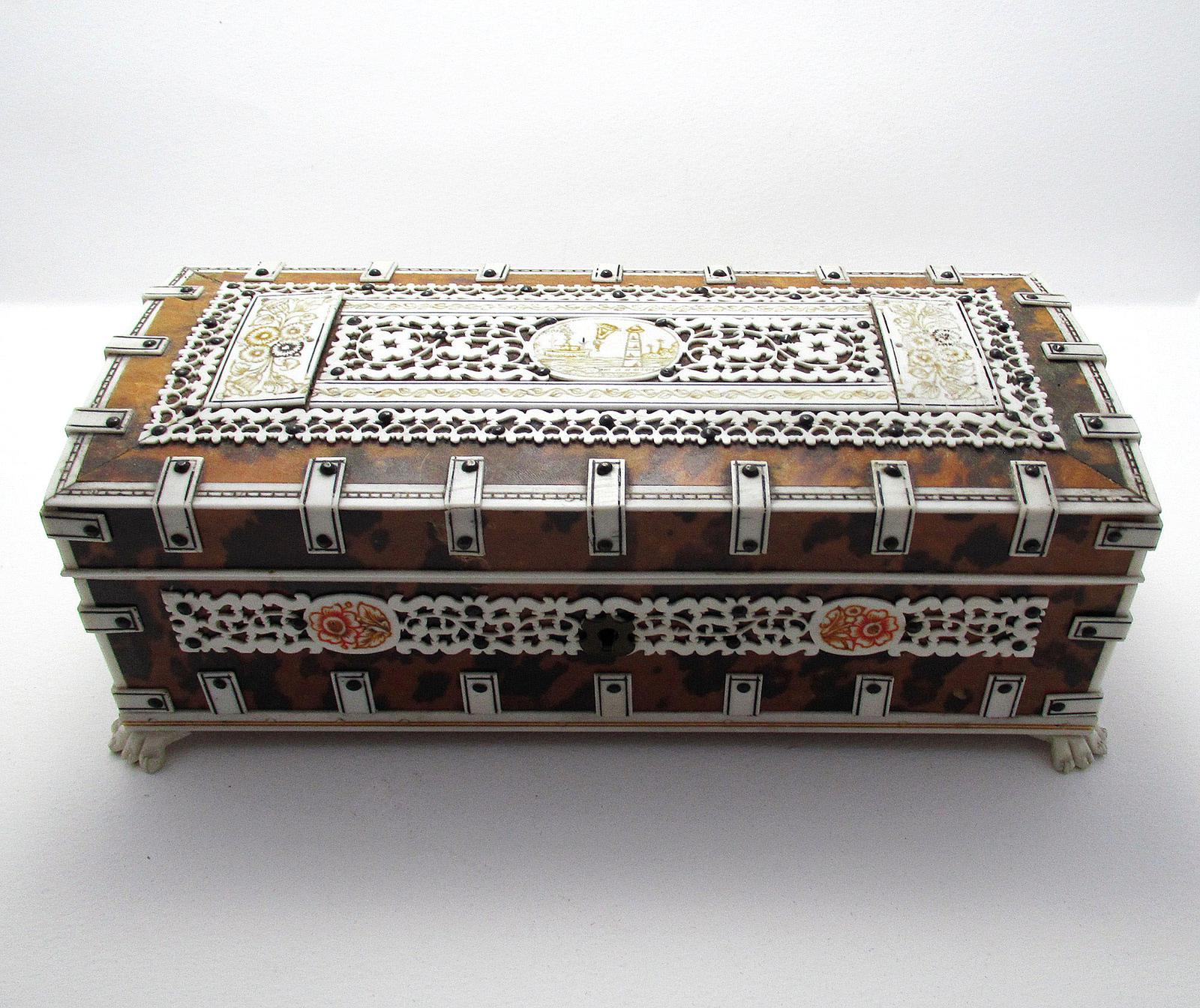 Quality Victorian Anglo Indian Antique Vizagapatam Trinket Jewellery Box Casket, 19th Century India