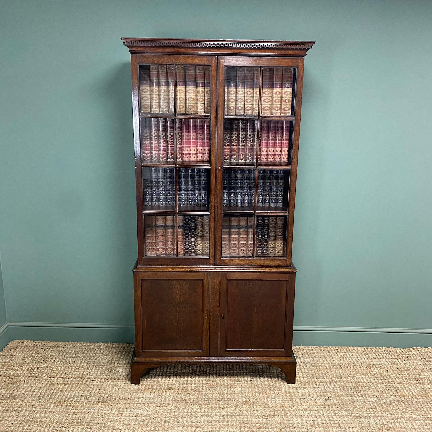 Quality Victorian Antique Glazed Oak Bookcase On Cupboard