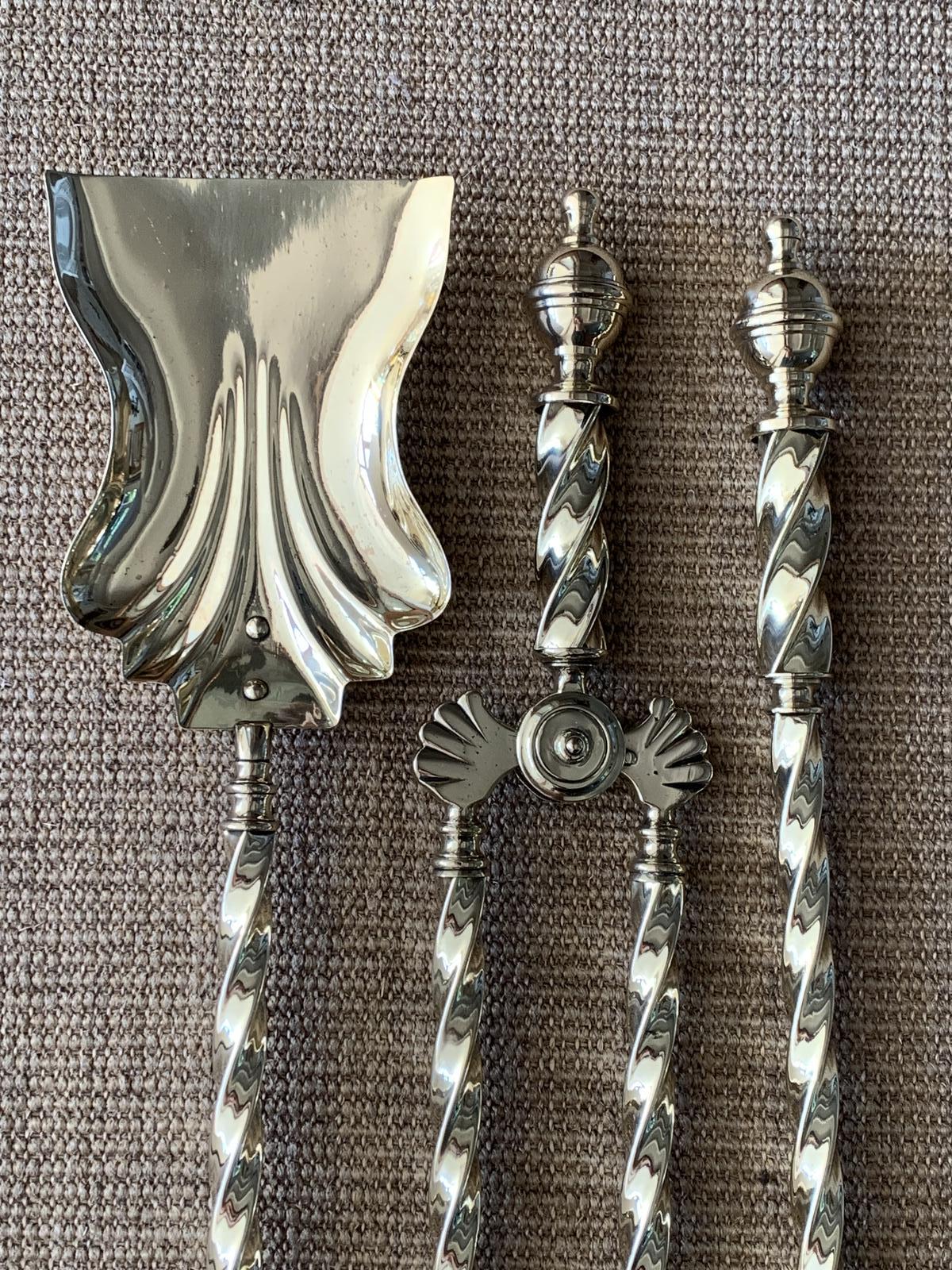 Quality Victorian Brass Barley Twist Fire Irons Poker Tongs Shovel Brass Fire Tools c.1889