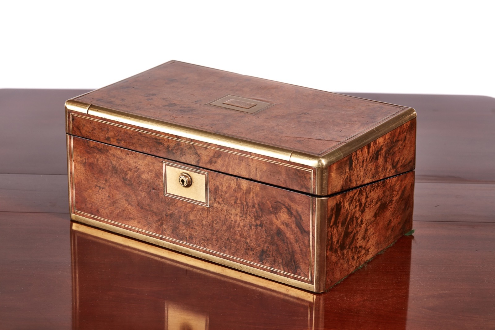 Quality Victorian Brass Bound Burr Walnut Writing Box